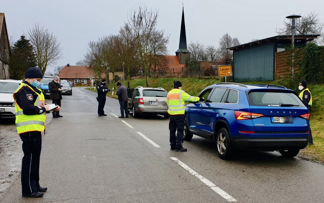 Da der Landkreis Mecklenburgische Seenplatte seit einigen Tagen Hochrisikogebiet ist, gibt es inzwischen Einreisebeschränkungen. Deren Einhaltung wurde von der Polizei gestern bei Leizen auf der B 198 kontrolliert. Bei ziemlich miesen Witterungsbedingungen stoppten die Polizisten im Beisein von Landesinnenminister Torsten Renz in zwei Stunden ingesamt 47 Fahrzeuge. Dabei stießen sie auf viel Verständnis.