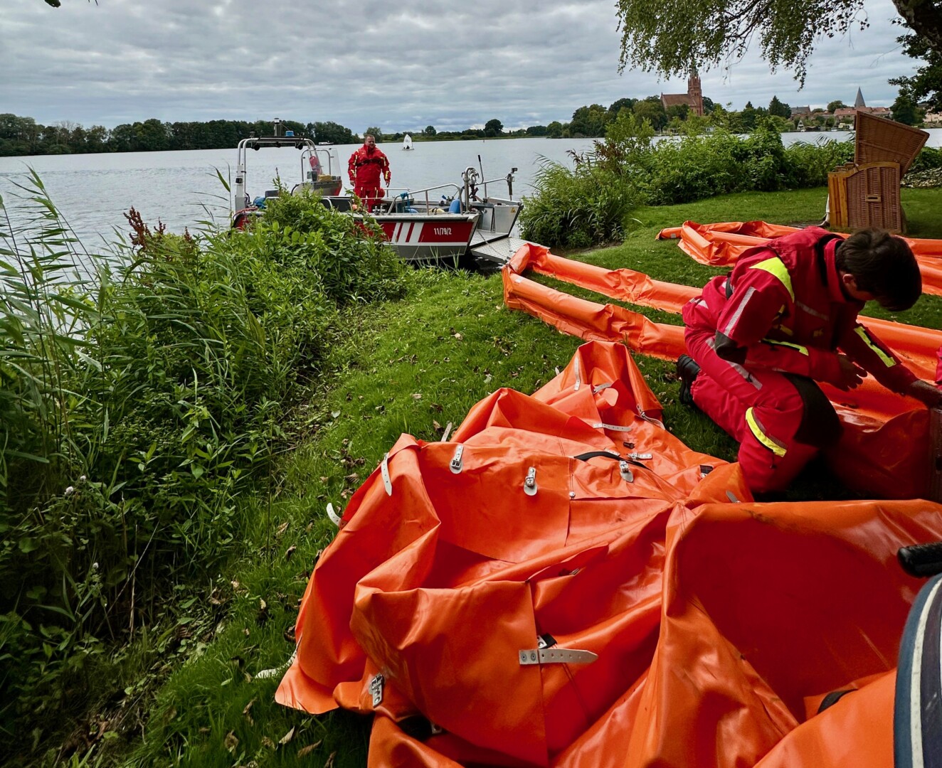 Die Ursache der Havarie muss noch geklärt werden. Neben den Feuerwehrleuten Röbel wurden auch die Wassergefahrgutgruppen Alt Schwerin und Alt Strelitz, der CBRN-Zug des Landkreises und die DRK-Wasserwacht alarmiert.