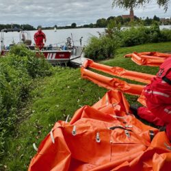 Großeinsatz seit mehreren Stunden in Röbel. Gegen dreiviertel zehn sind mehrere Einsatzkräfte alarmiert worden, weil beim Betanken mit Heizöl aus einem Heizölwagen mindestens 300 Liter übergelaufen, in die Regenentwässerung und schließlich in die Müritz gelangt sind.