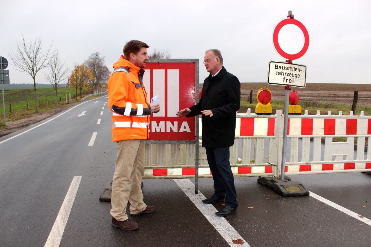 Foto: Landrat Heiko Kärger und Hajo Schütt an der Baustelle bei Neu Gaarz