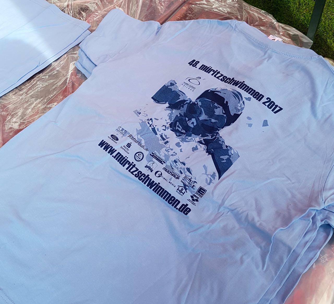 Damit fast jeder Schwimmer sein Finisher T-Shirt in der richtigen Größe bekommt, lief bei der Vorbereitung alles „Just in Time“. Die Größenbestellung von XS bis XXXL ging letzte Woche raus und über Nacht wurden 1010 T-Shirts produziert, die dann am Samstag zusammen mit einem Transponder von tollense-timing, einer Schwimmkappe und für die zusätzliche Sicherheit mit einem Restube in die EDEKA Startertüten gepackt wurden.