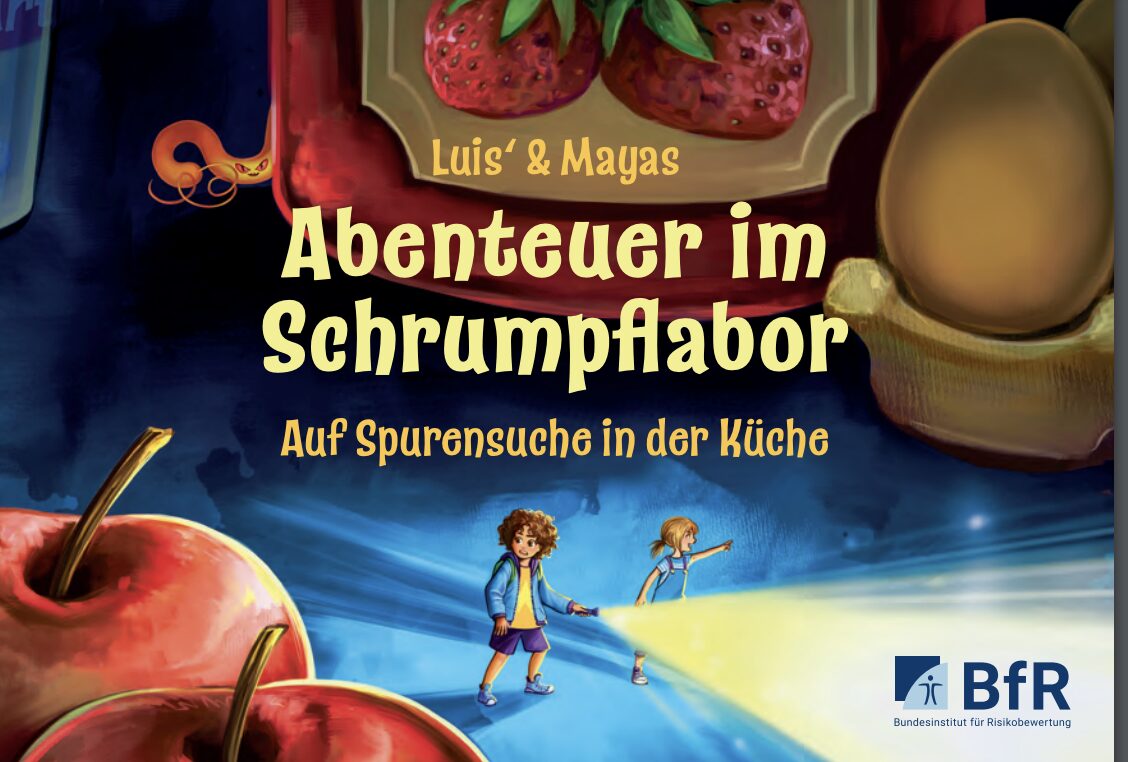 Das Kinderbuch „Luis‘ und Mayas Abenteuer im Schrumpflabor: Auf Spurensuche in der Küche“ richtet sich an Kinder ab der 1. Klassenstufe. Das Buch kann über die BfR-Webseite unter https://www.bfr.bund.de/de/bfr-kinderbuch.html kostenfrei bestellt oder direkt online gelesen werden.