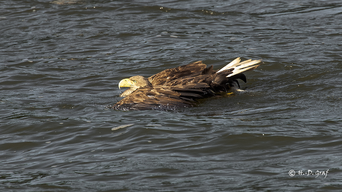 Auch Seeadler brauchen bei diesen Temperaturen eine Abkühlung und gehen baden.