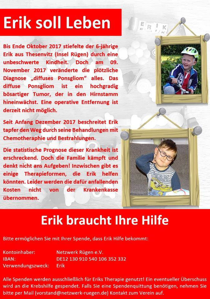 Wer immer die Möglichkeit hat, sollte diesen Beitrag teilen, damit möglichst viele Menschen von Eriks Schicksal erfahren und ihn sowie seine Familie unterstützen.