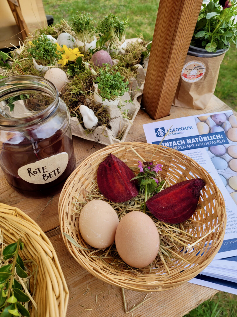 Erlebnisreich sind die Osterfeiertage gestern im Agroneum Alt Schwerin ausgeklungen. Das kunterbunte Programm, das das Team rund um Museumsleiterein Anke Gutsch vorbereitet hatte, bot einiges für Groß und Klein. An den verschiedenen Ständen im Zentrum des Freigeländes wurde gebastelt, gespielt, geschlemmt oder erklärt, wie man beispielsweise ganz natürlich mit Kurkuma oder roter Bete die Eier zum Osterfest bunt färben kann. Die kleine Sonderschau zu den unterschiedlichen Ostertraditionen erstaunte den einen oder anderen Besucher. Denn dass auch die Farben der bunten Eier mit einer Bedeutung verbunden waren, ist heutzutage nicht mehr so gebräuchlich. So sollen rot gefärbte Eier dem Finder Glück bescheren, blaue Eier dagegen bedeuten Pech für längere Zeit. Viel Andrang herrschte an der Haltestelle der Alt Schweriner Dampffreunde, die regelmäßig mit ihrer 5-Zoll-Bahn bei den Veranstaltungen im Agroneum dabei sind.