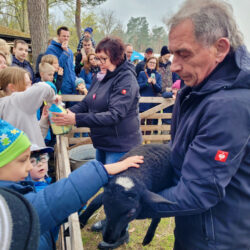 Dort konnten alle Kinder mit ihren Eltern oder Großeltern ein paar Runden drehen. Der Höhepunkt des Tages war die Lämmertaufe am Nachmittag. Bis dahin wurden zahlreiche Namensvorschläge eingereicht, die dann mit etwas Glück zur Taufe um 15 Uhr ausgelost wurden.