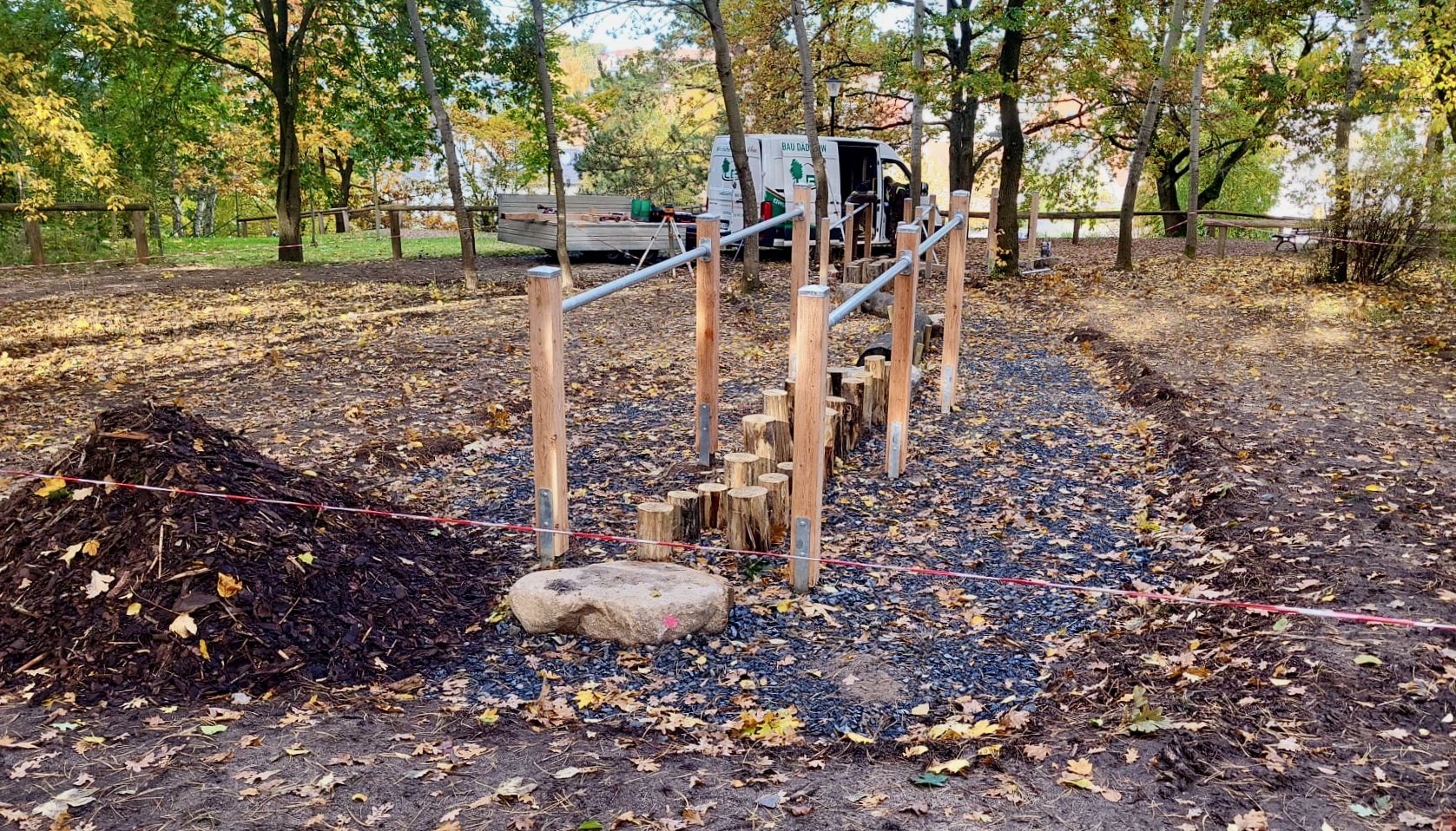 Im Klinker Heilwald gibt es verschiedenen Bereiche. Zu finden sind dort unter anderem ein bewegter Steg und ein Bewegungsparcours, Dehnblöcke, Zielwerfen mit Trampolin und Rampe, motorische Sitzelemente und jede Menge Möglichkeiten, zu sehen, zu riechen und zu tasten.