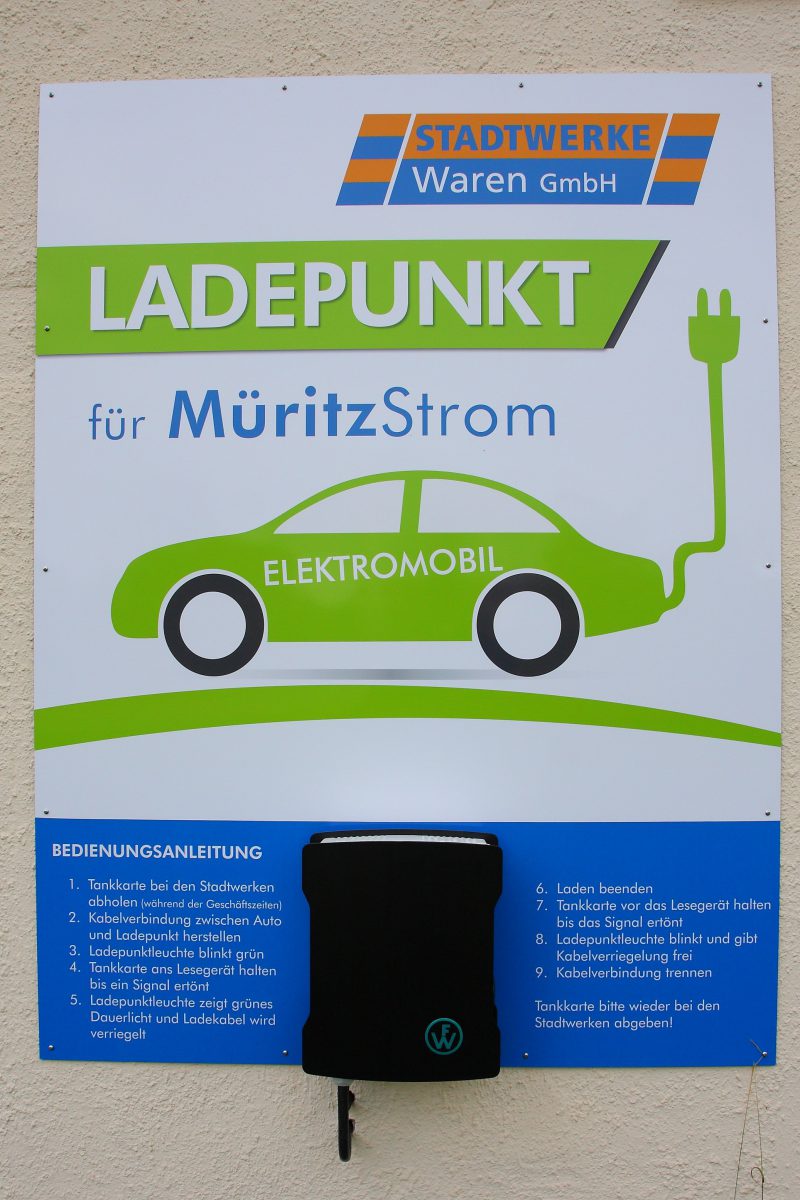 Weitere öffentlich zugängliche Ladesäulen an der Müritz gibt es in Carolinenhof, in Bollewick an der Scheune, in Ludorf am Gutshaus, in Göhren-Lebbin am Schlosshotel sowie am Kurzentrum in Waren an der Müritz. Auch in Gessin bei Basedow wurde eine E-Ladesäule installiert.