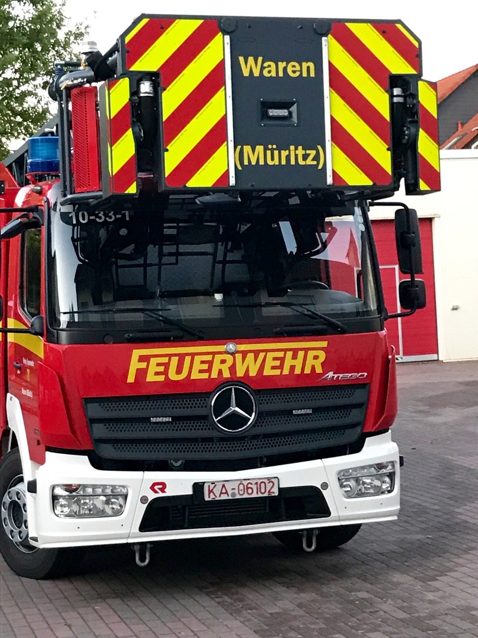 Warens nigelnagelneue Drehleiter hatte gerade ihren ersten Einsatz. In der Hans-Beimler-Straße hat ein Raumelder geschrillt, Nachbarn alarmierten die Feuerwehr. Zum Glück ein Fehlalarm, nur zu scharf angebratenes Essen.