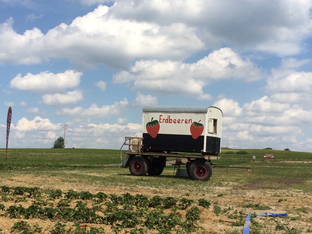 Für Eilige gibt es auch bereits feldfrisch gepflückte Freiland-Erdbeeren direkt am Erdbeerwagen. Probieren natürlich erwünscht.