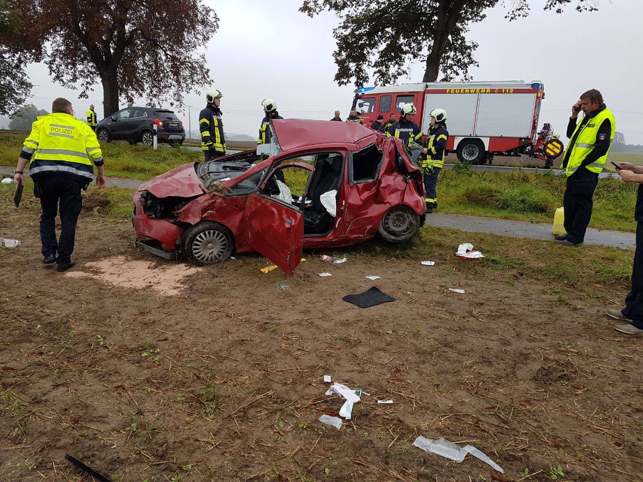 Bei einem schweren Verkehrsunfall auf der B192 bei Sembzin ist heute Morgen gegen 8:15 Uhr ein Mann ums Leben gekommen. Der Fahrer war mit seinem Mitsubishi aus Sietow kommend in Richtung Klink unterwegs, als er aus bisher ungeklärter Ursache von der Fahrbahn abkam und durch einen Straßengraben fuhr. In der Folge hob das Fahrzeug ab, flog mehrere Meter durch die Luft, fällte dabei zwei Bäume und kam nach knapp 150 Metern zum Stilstand.