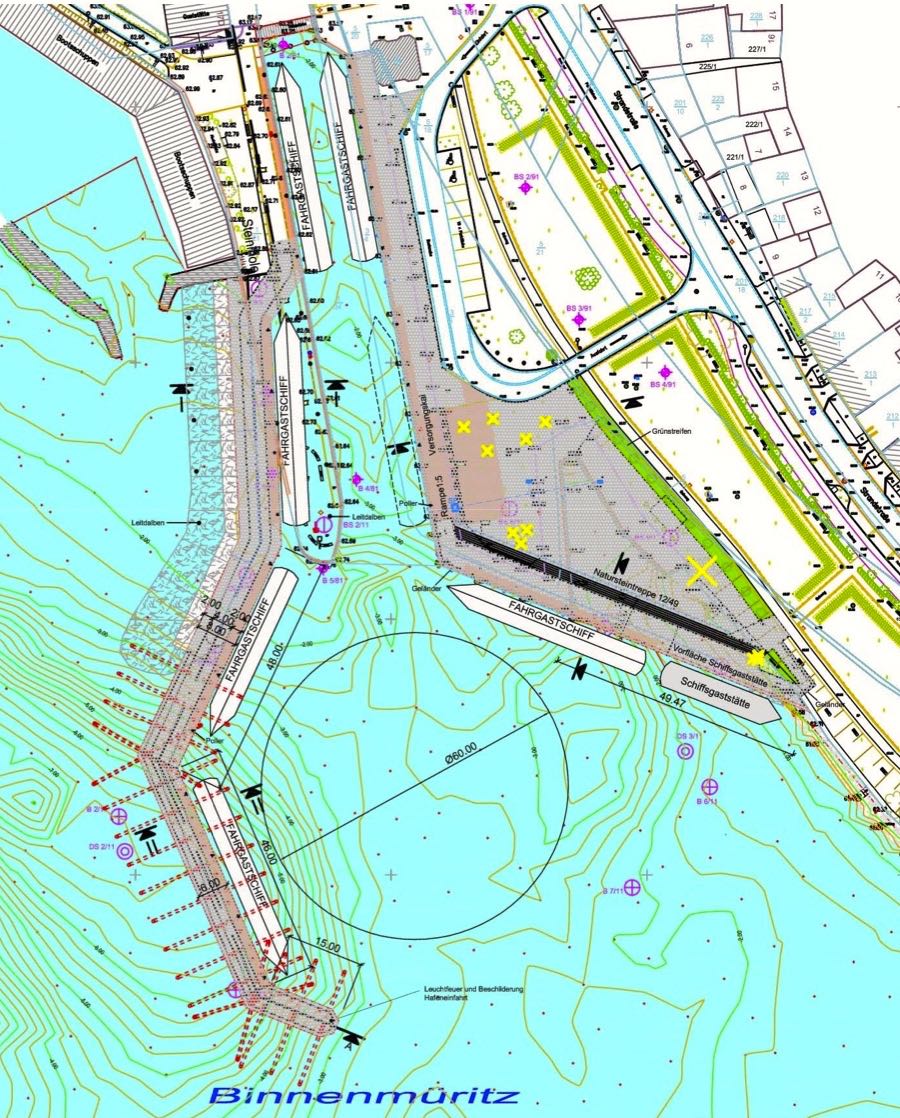 Ziel der Maßnahme: Die Fahrgastschiffe sollen zum größten Teil aus dem Hafen verschwinden und bekommen an der Steinmole moderne Ver-und Entsorgungseinrichtungen. Platz ist für sechs Dauerliegeplätze. Lediglich drei Anlegestellen sollen im Hafen bleiben. Aber auch nur fürs Ein- und Aussteigen. Um diesen Platz zu bekommen, so die Westseite um eine 110 Meter lange Mole ergänzt werden.