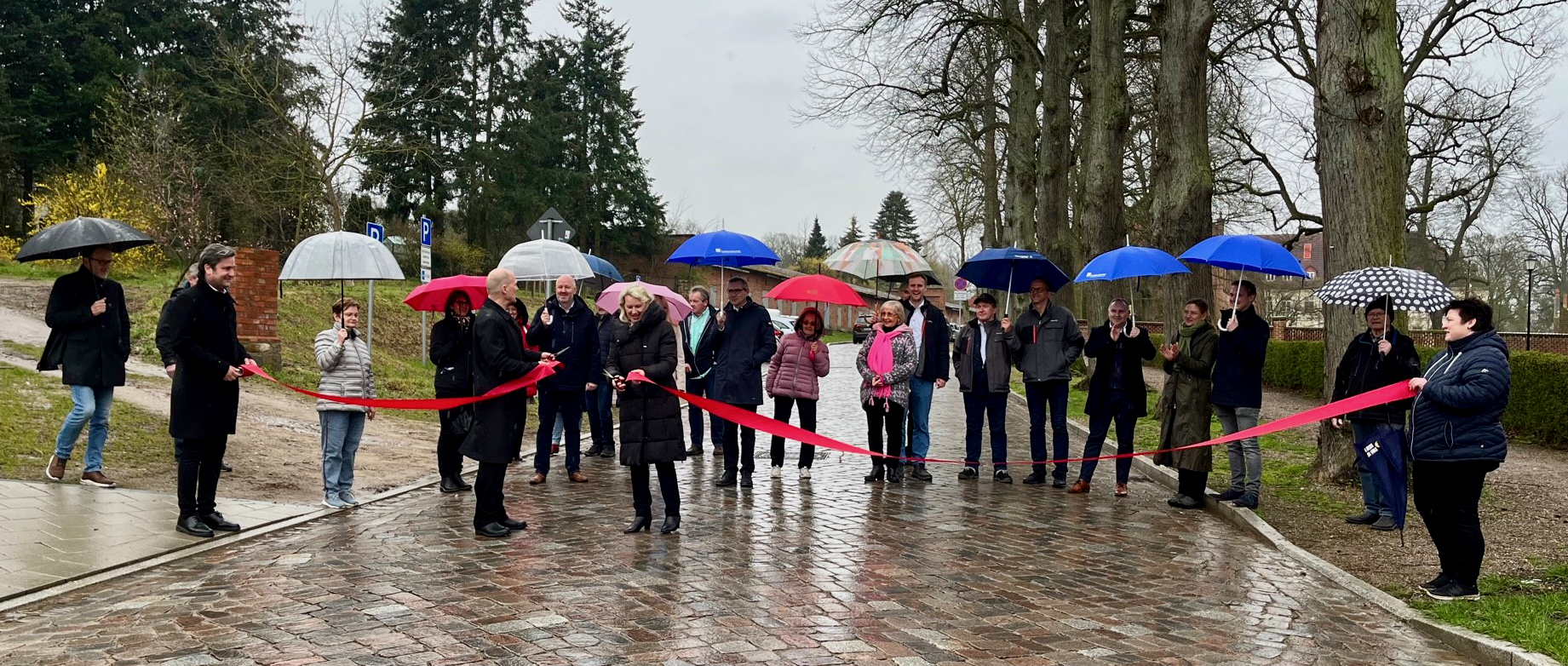 Heute ist die historische Straße „Kloster“ in Malchow nach umfangreicher Sanierung und Umgestaltung feierlich übergeben worden. Als eines der größten Infrastrukturprojekte in den vergangenen Jahren soll diese Maßnahme das Erscheinungsbild des gesamten öffentlichen Raumes im östlichen Stadtteil, auf dem sich die bekannte Klosteranlage befindet, entscheidend und nachhaltig prägen. Im Umfeld der touristisch stark frequentierten historischen Klosteranlage sind im Zeitraum von Juni 2020 bis heute insgesamt 921 Meter Straße neu strukturiert und ausgebaut. worden. Es gab einen neuen Regenwasserkanal, Geh- und Radwege wurden gestaltet, Parkplätze sowie eine Elektro-Ladesäule eingerichtet. Die gesamte Maßnahme kostet rund 2,4 Millionen, 1,9 Millionen davon kamen als Fördermittel. Trotz Pandemie, Inflation und Material sind die Kosten im geplanten Rahmen geblieben.