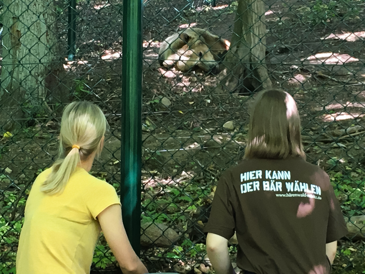 “Ich bin sehr beeindruckt von dem, was ich hier erlebt habe. Gäbe es den Bärenwald Müritz und die Tierschutzstiftung Vier Pfoten nicht, dann würden die Bären, die hier leben, wohl immer noch leiden. Das macht mich alles sehr nachdenklich”, sagte Annett Fleischer während des Drehs, bei dem sie auch bei der Fütterung helfen durfte. Vor die Kamera bekam das Fernseh-Team jede Menge Bärenwald-Bewohner: Rocco, der ein ausgiebiges Mittagsschläfchen hielt und sich von all’ der Technik vor seinem Zaun nicht stören ließ, Balou, der im Wasser planschte, Bärin Tapsi und Bär Michal beim Kuscheln, aber auch Bärin Dushi, die erst seit kurzen im Bärenwald Müritz lebt und immer noch Verhaltensauffälligkeiten zeigt – ein trauriges Erbe aus ihrer Zeit als Bewohnerin in einem albanischen Zoo, einst als “Europas Horror-Zoo“ bezeichnet.