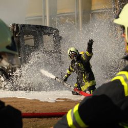 Die Feuerwehren aus der Umgebung waren schnell vor Ort und konnten somit ein Übergreifen auf den Stall und ein Silo verhindern. Mit Schaum löschte die Feuerwehr den Brand innerhalb weniger Minuten ab. Verletzt wurde niemand, teilte die Polizei vor Ort mit.