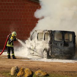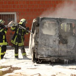 Ein Transporter einer polnischen Leiharbeitsfirma stand lichterloh in Flammen.
