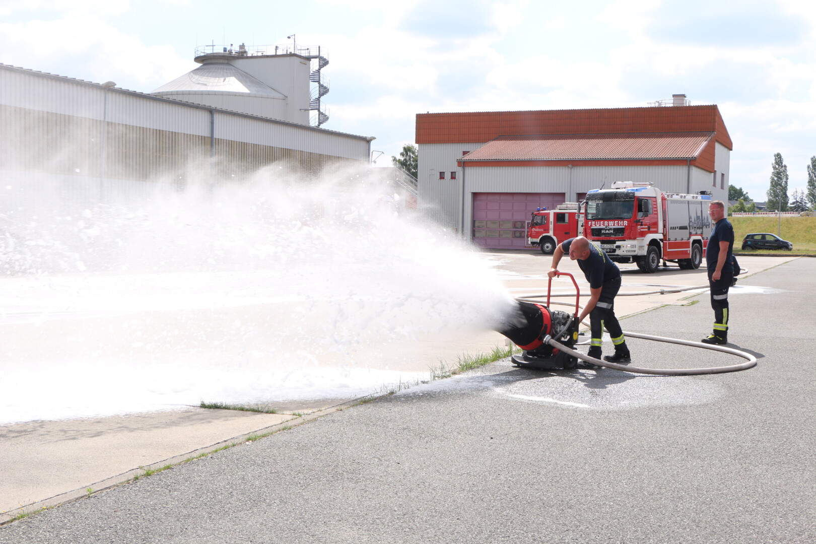 Bilder: Bei den beiden großen Übungen erprobten die Kameraden ausgiebig unterschiedliches Gerät und verschiedene Schäume zur Brandbekämpfung.