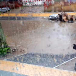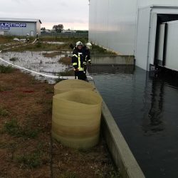 Warens Feuerwehrleute wurden viermal gerufen. Unter anderem stand die Laderampe des Unternehmens Steinofenmeister unter Wasser. Außerdem hat die Raiffeisenstraße im Gewerbegebiet Ost ordentlich was abbekommen.