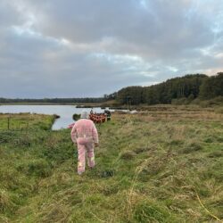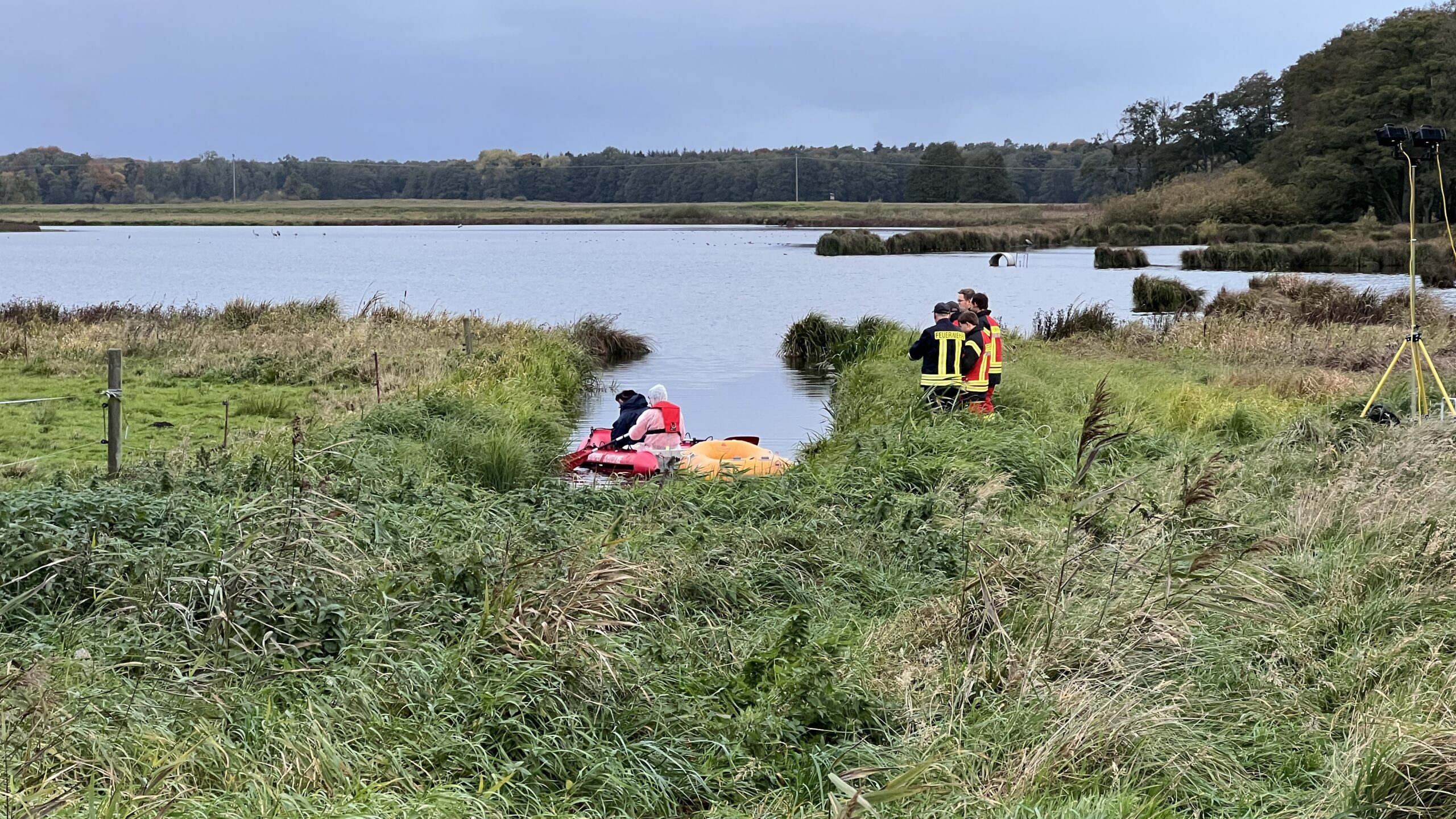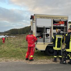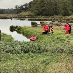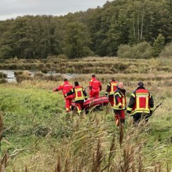 Nachdem der Landkreis gestern bestätigt hat, dass in einem Geflügelbetrieb in Rechlin die Geflügelpest nachgewiesen wurde, müssen Feuerwehrleute heute im Bereich Kieve mehrere tote Kraniche bergen. Das Veterinäramt war zunächst mit eigenen Kräften vor Ort, um Proben zu entnehmen. Da sich die Tiere jedoch in einem schwer zugänglichen Moorgebiet befanden, wurde Unterstützung der Feuerwehr angefordert.
