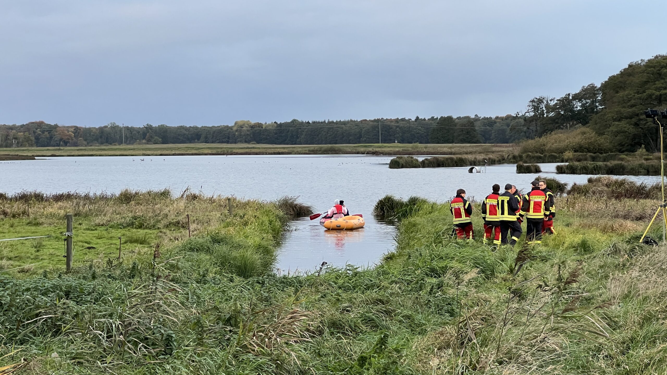 Nachdem der Landkreis gestern bestätigt hat, dass in einem Geflügelbetrieb in Rechlin die Geflügelpest nachgewiesen wurde, müssen Feuerwehrleute heute im Bereich Kieve mehrere tote Kraniche bergen. Das Veterinäramt war zunächst mit eigenen Kräften vor Ort, um Proben zu entnehmen. Da sich die Tiere jedoch in einem schwer zugänglichen Moorgebiet befanden, wurde Unterstützung der Feuerwehr angefordert.