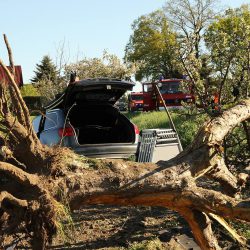 Nach Polizeiangaben war der 41-jährige Fahrer mit seinem Audi mit deutlich überhöhter Geschwindigkeit in Richtung Bollewick unterwegs, als er während eines Überholvorganges die Kontrolle über sein Fahrzeug verlor. Der Audi kam erst rechts und kurz darauf links von der Fahrbahn ab und prallte gegen einen Baum. Durch die enorme Wucht des Aufpralls wurde der Baum komplett entwurzelt. Ein Atemalkoholtest beim Fahrer ergab einen Wert von 1,23 Promille.