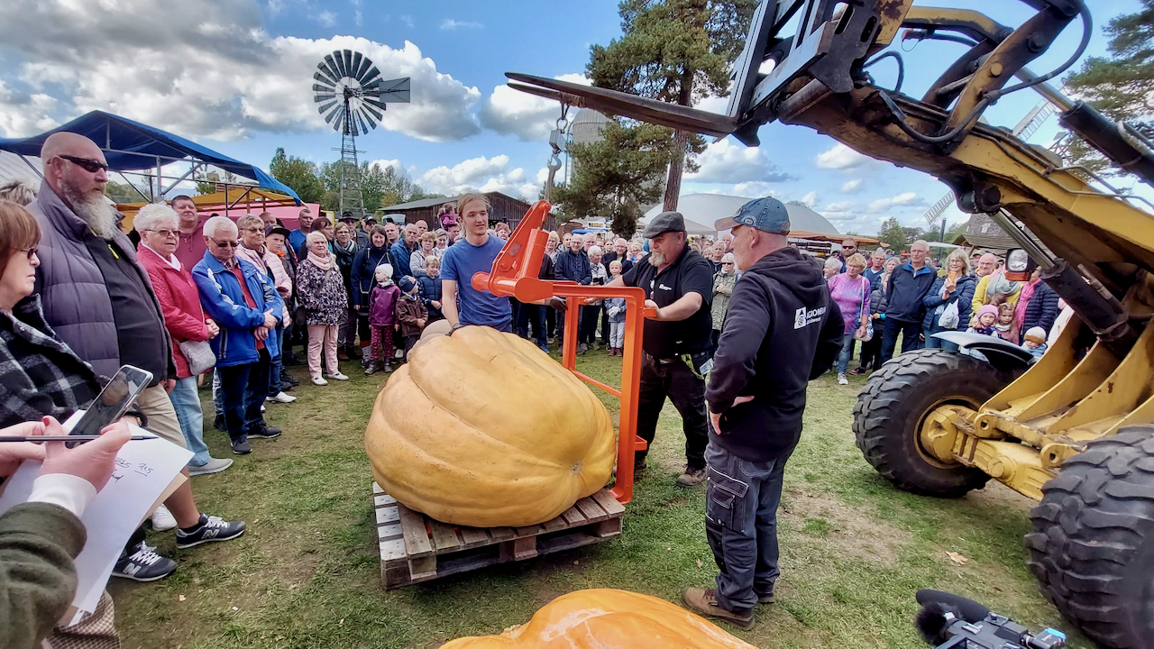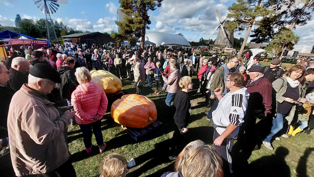 Der Sieg ging diesmal an die Müritz. Der 14-jähriger Fiete Stutz aus Röbel an der Müritz hatte heute in Alt Schwerin wieder die Nase vorn. Mit dem Rekordwert von 412 Kilogramm gewann Fiete den Kürbis-Giganten-Wettbewerb des Agroneums – vor einem Züchter aus Brandenburg, dessen Exemplar auf 332,5 Kilogramm kam. Dritter wurde ein Kürbis mit immerhin auch noch 185 Kilogramm Gewicht.