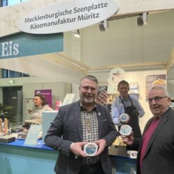 Grüne Woche in Berlin, Tag eins. Endlich wieder und Mecklenburg-Vorpommern hat gleich eine eigene Halle. Da schauen auch die Bayern gerne mal vorbei. Mit dabei auch zwölf Aussteller aus der Mecklenburgischen Seenplatte, wie die Müritzfischer, das Schliemann-Museum mit leckeren Aufstrichen, die Hanf Farm GmbH, die Käsemanufaktur Müritz aus Bollewick und die Müritz-Saga.