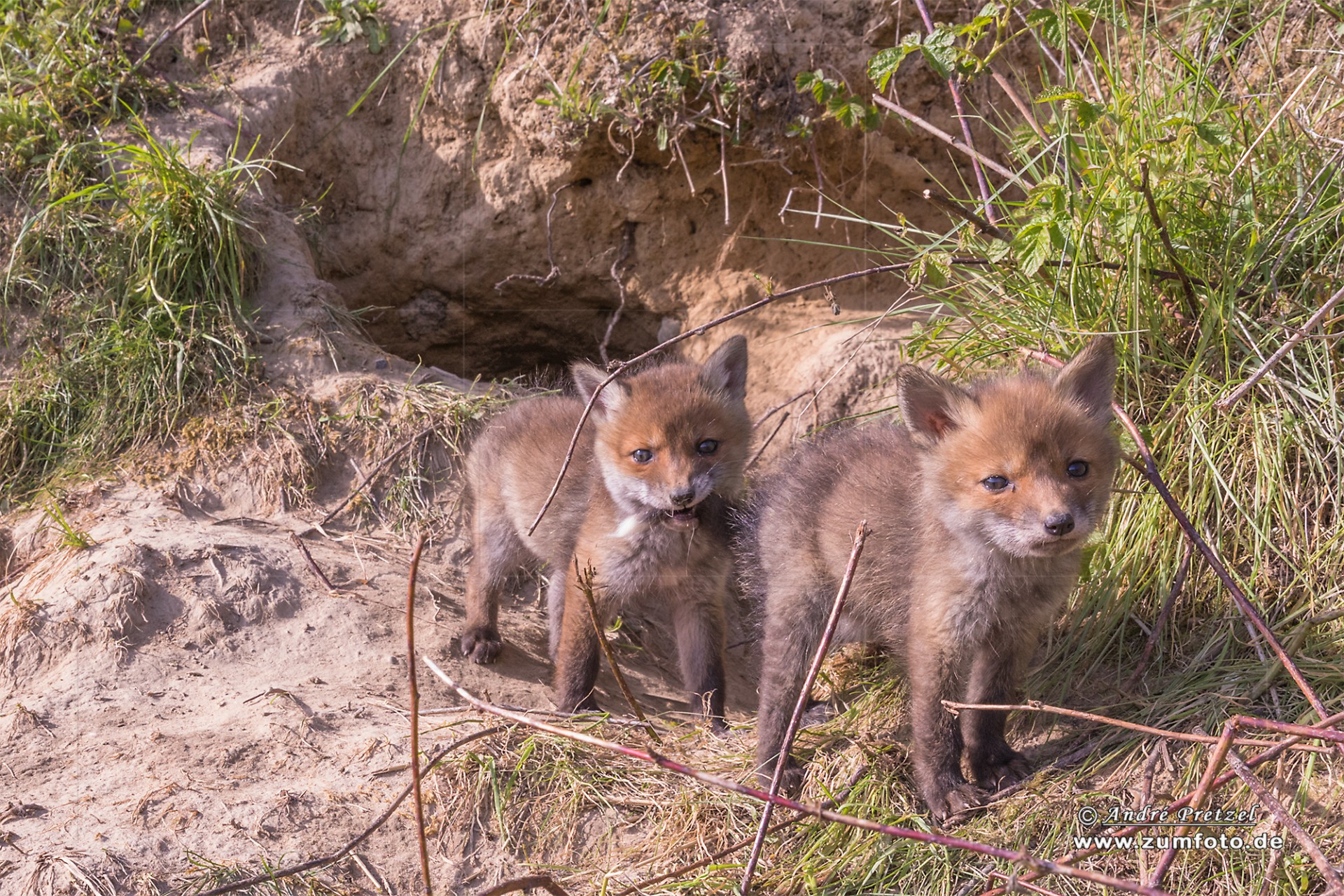 Die Füchse der Region haben Nachwuchs und André Pretzel hat gestern zwei von den flauschigen „Babys“ vor die Kamera bekommen.