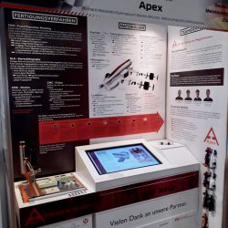 Mit einem tollen Messestand, einem inhaltlich detaillierten Portfolio, einer guten mündlichen Präsentation und einem selbständig gefrästen und superschnellen Rennauto konnte „Apex“ Platz 7 erzielen. Mit der drittschnellsten Fahrzeit auf der 20 Meter langen Rennbahn in 1,043 s standen die Chancen gut, um im K.O. Rennen weit vorne zu landen.