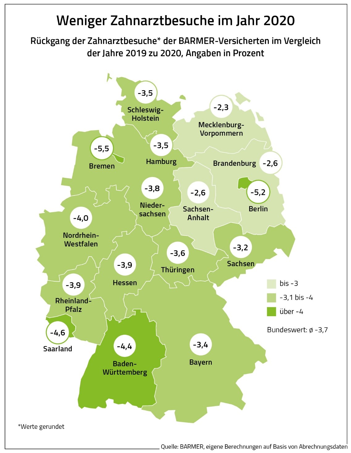 Insgesamt sei die Zahl der zahnmedizinisch versorgten Versicherten der Krankenkasse von 6,57 Millionen im Jahr 2019 auf 6,25 Millionen im Jahr 2020 gesunken.