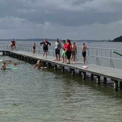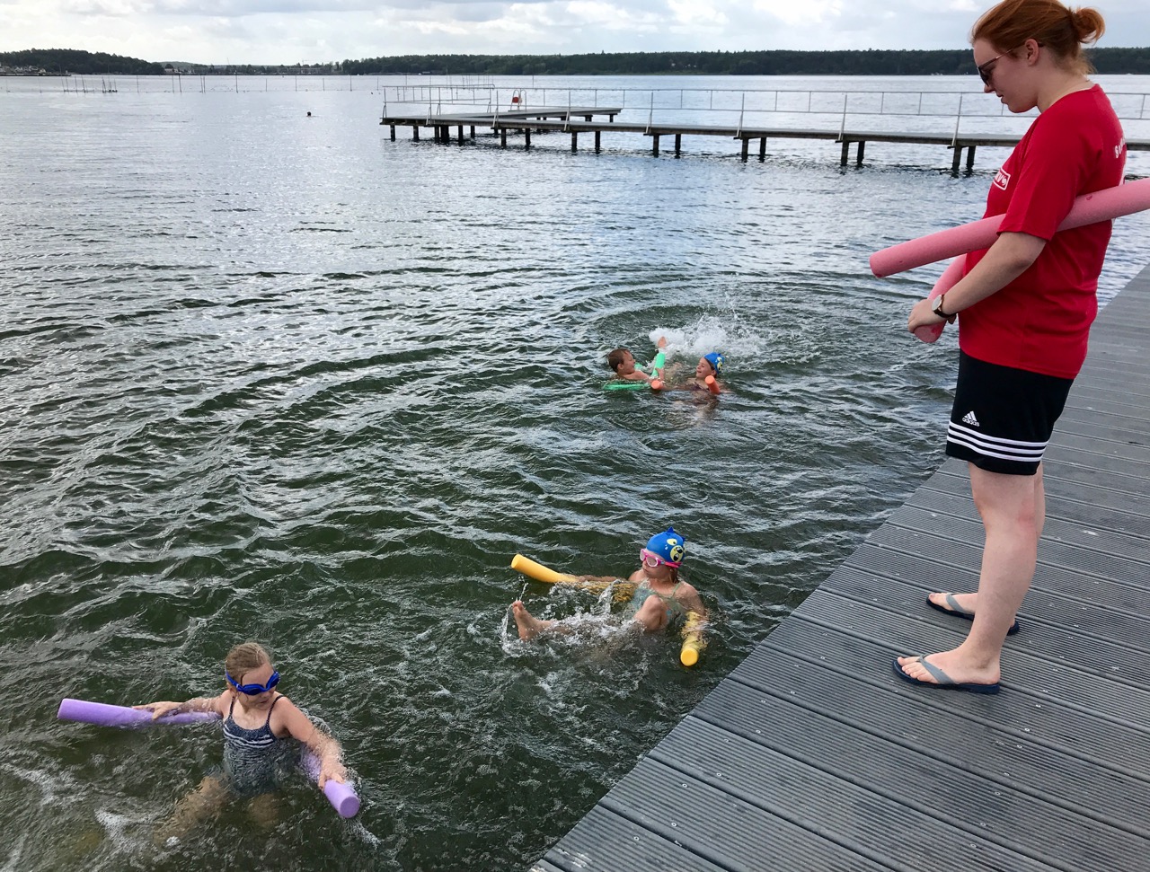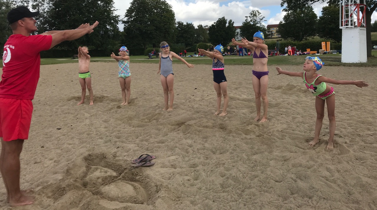 „Einige können noch gar nicht schwimmen und müssen sich auch erst überwinden, andere wollen zum Ende der Woche höhere Stufen ablegen“, erzählt Trainerin Cornelia Bachert, die wohl schon hunderten Müritzer Kindern das Schwimmen beigebracht hat. Inzwischen gehören zu ihrem Betreuerstab Frauen und Männer, die bei Cornelia Bachert vor einigen Jahren selbst das Schwimmen gelernt haben und nun mit ihr gemeinsam dafür sorgen, dass die Mädchen und Jungen ohne Angst in die Müritz hüpfen können.