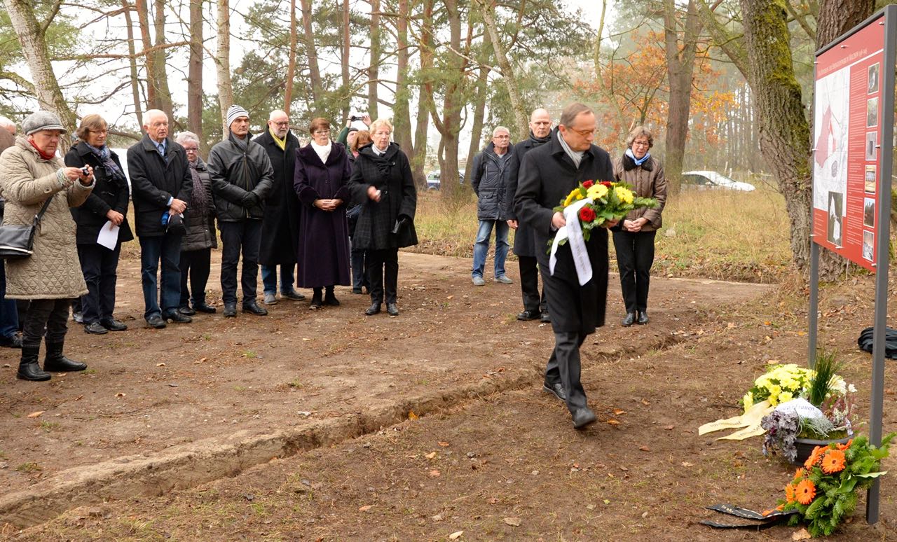 An der Stelle der ehemaligen Fabrik soll nach Aussage von Bürgermeister René Putzar ein Gedenkort entstehen Zu den Gästen gehörten gestern auch eine Überlebende des KZ und eine Frau, die im Konzentrationslager Ravensbrück geboren wurde.