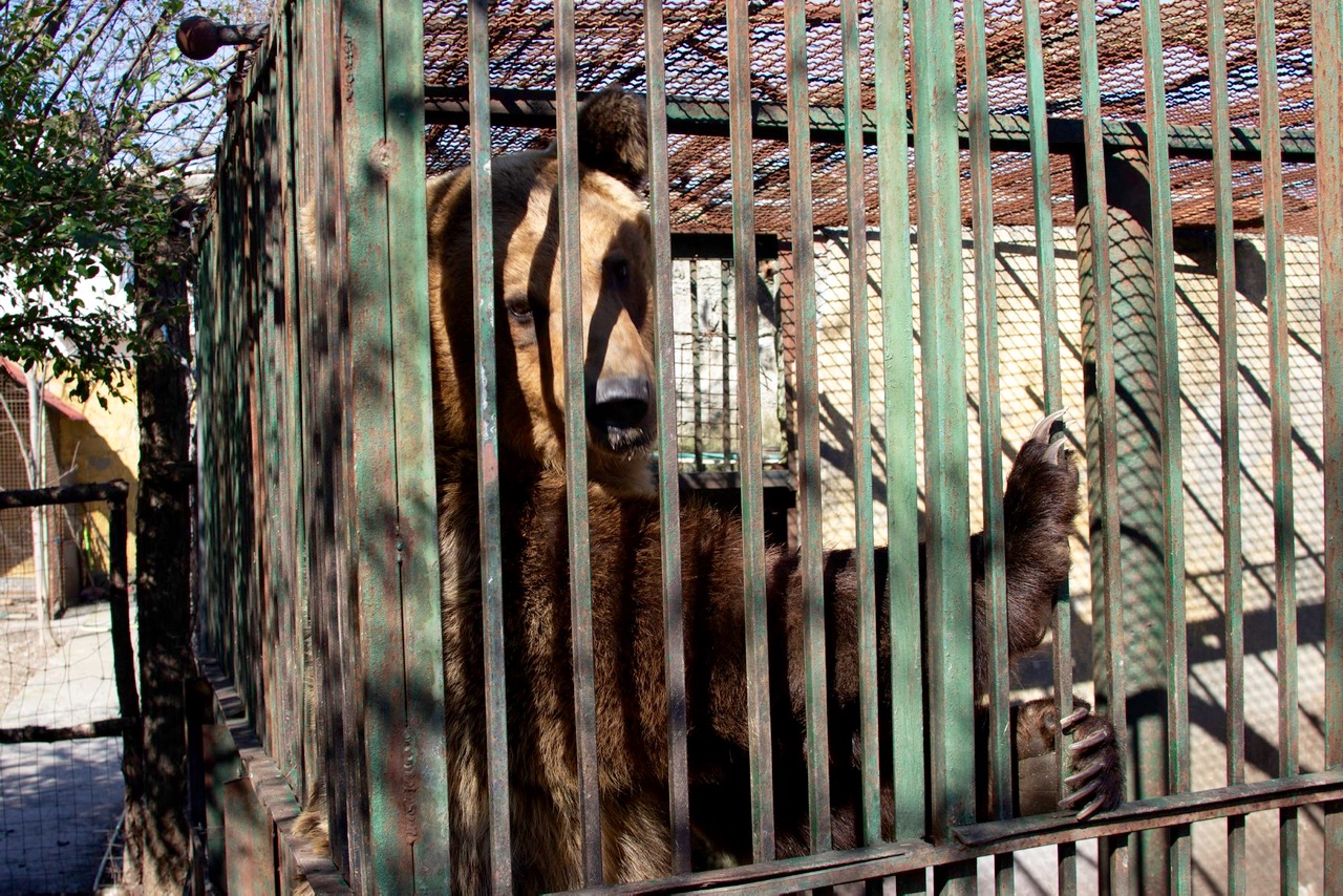 Braunbär Rocco wird als Haustier in einem winzigen Käfig auf einem Privatgrundstück in Elbasan in Albanien gehalten. Der Besitzer übernahm den Bären als Jungtier. Bis heute muss Rocco in einem ca. zwölf Quadratmeter verrosteten Metallkäfig auf Betonboden leben – ohne Gelegenheit zum Baden und ohne Schutz vor Wind, Sonne und Regen. Jetzt, nach acht Jahren, wurde dem Halter die Aufbewahrung des Bären zu teuer, weshalb er sich entschied, sich an die örtliche Behörde zu wenden. Die internationale Tierschutzorganisation VIER PFOTEN wird am 4. Juni den Braunbären Rocco aus Elbasan in Albanien in ihren BÄRENWALD Müritz im Norden Deutschlands überführen.