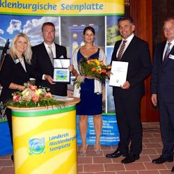 In der Kategorie Kleinunternehmen verlieh Kreistagspräsident Thomas Diener den Wirtschaftspreis an die Fleesensee SpaWorld GmbH. Das Unternehmen hat 365 Tage im Jahr geöffnet. Die Mitarbeiter arbeiten in Früh- und Spätschichten. „Die Mitarbeiter sind das größte Kapital in unserem Unternehmen,“ hat die Geschäftsleitung schon lange erkannt. Neben finanziellen Anreizen erfahren die Mitarbeiter in diesem Unternehmen viel Wertschätzung: Regelmäßig gibt es Team- und Mitarbeitergespräche, damit Probleme und Fragen schnellstmöglich geklärt werden können.