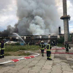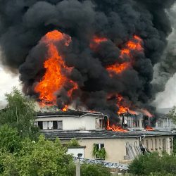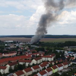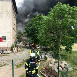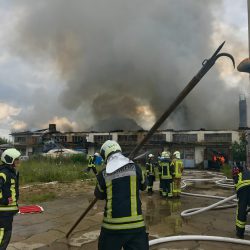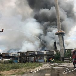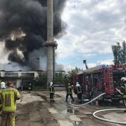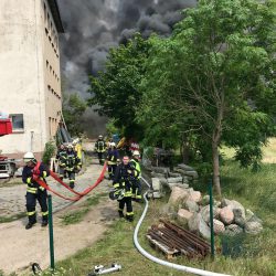 Was die Feuerwehrleute seit den Mittagsstunden in der Teterower Straße leisten, ist wirklich enorm. Der Brand der alten Werkhalle verlangt ihnen alles ab. Die enorme Hitze und der extreme Qualm haben die Kameraden an ihre Grenzen gebracht.
