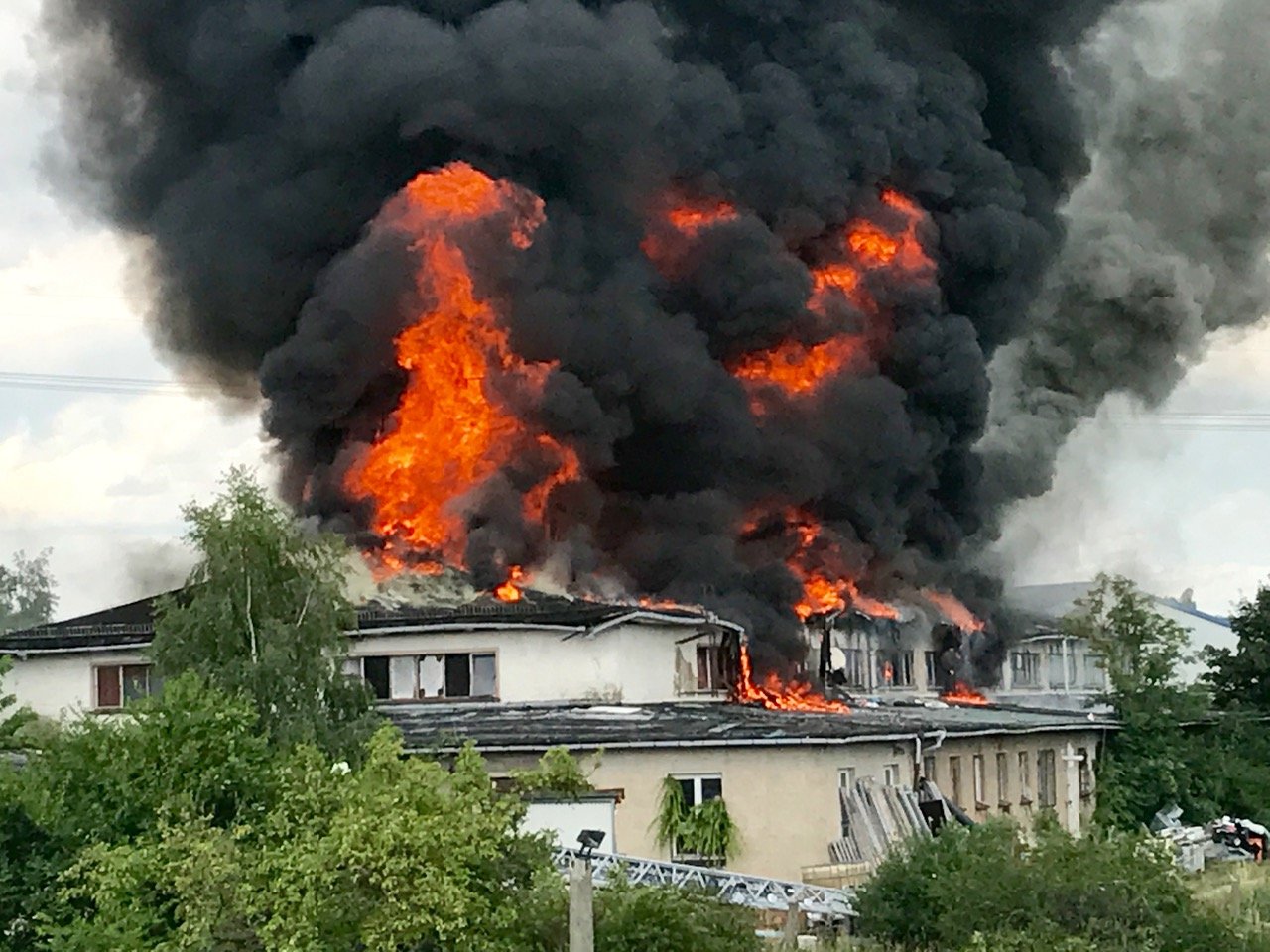 Beim Brand eines alten Industriegebäudes in der Teterower Straße in Waren sind heute zwei Menschen verletzt worden. Ausgelöst wurde der Großbrand offenbar durch Schweißarbeiten auf dem Dach.