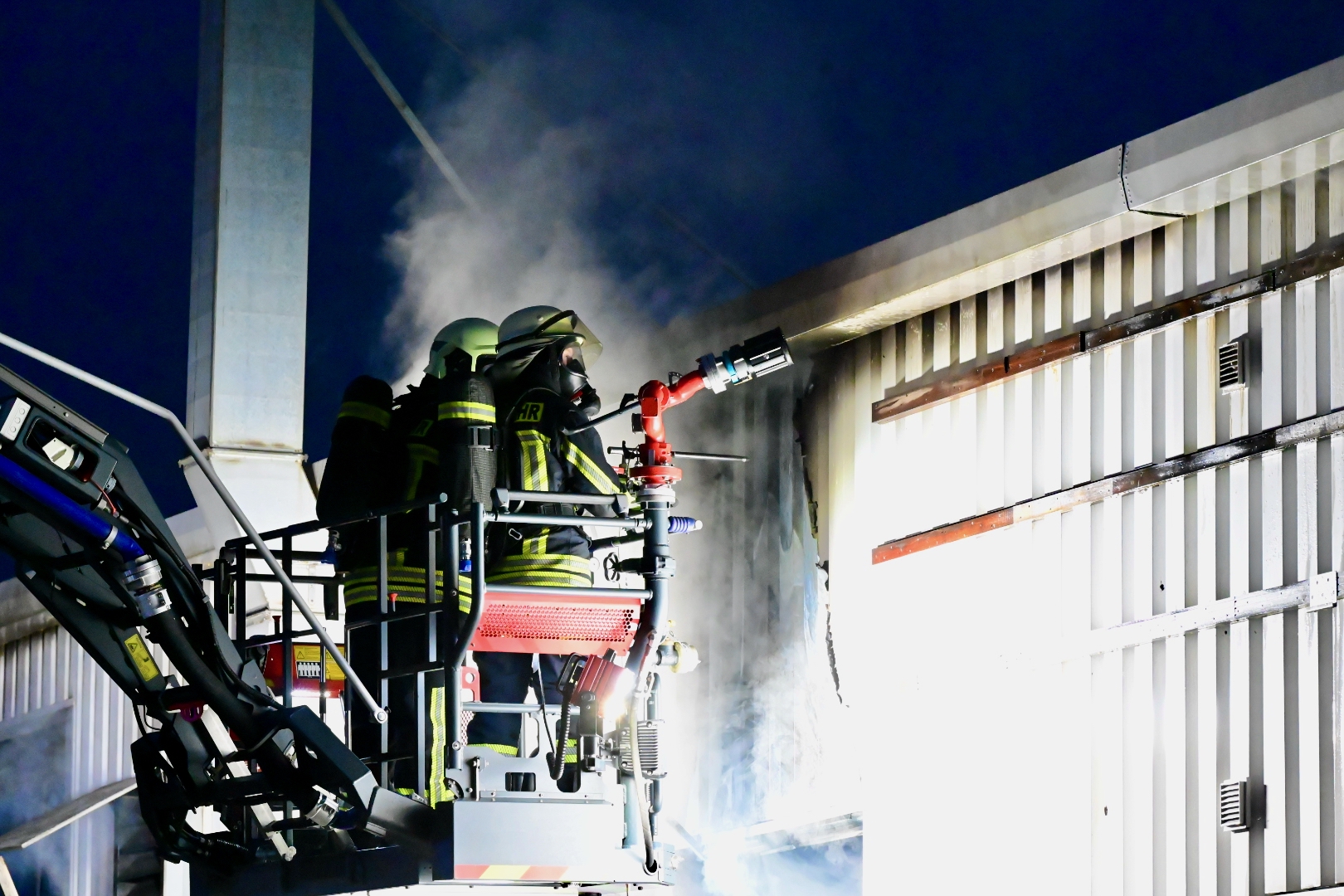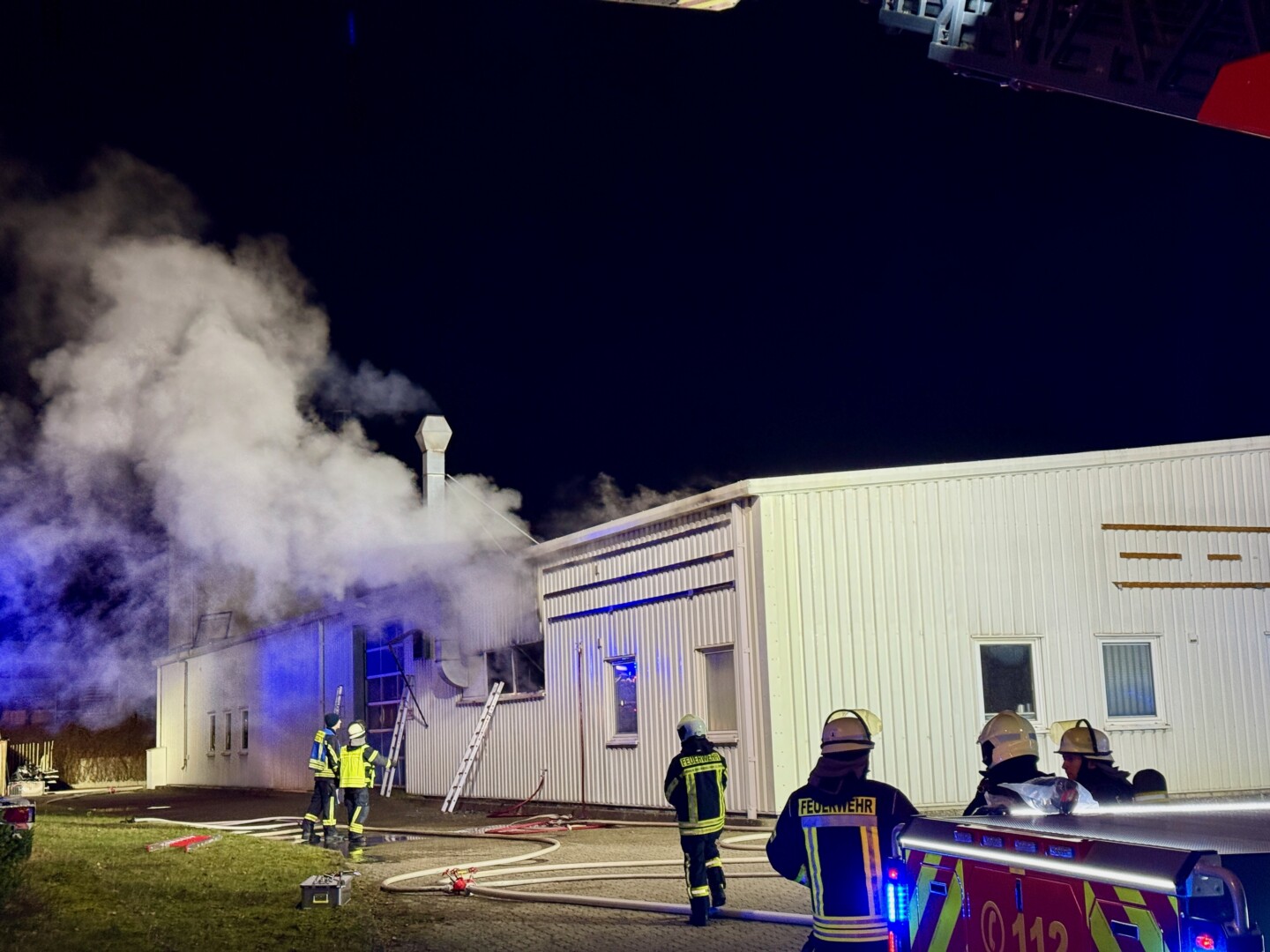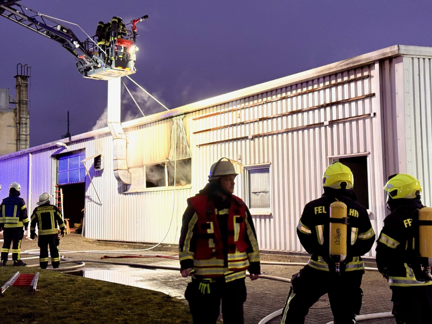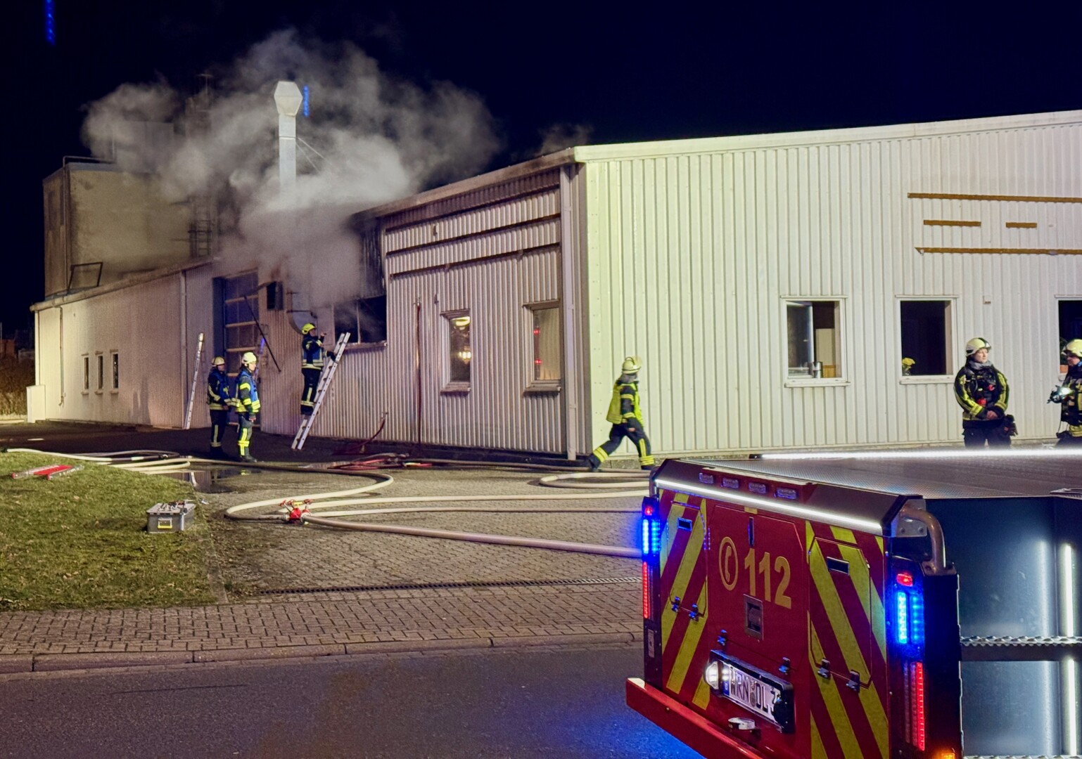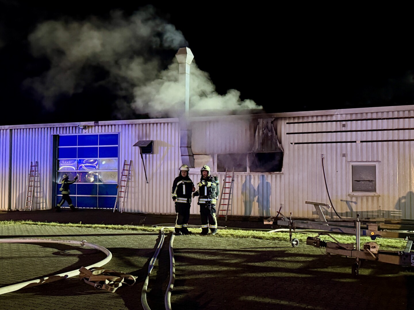Durch den schnellen Einsatz konnten die Kameraden zunächst ein Übergreifen auf den hinteren Teil der Halle, in dem Maschinen stehen, verhindern.