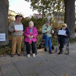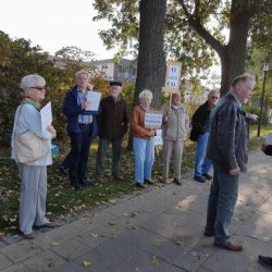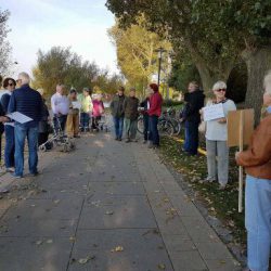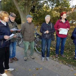 Zahlreiche Warener sind heute dem Aufruf des BUND gefolgt und haben gegen die geplante Fällung von Pappeln an Weg von der Steinmole zum Hafen protestiert.