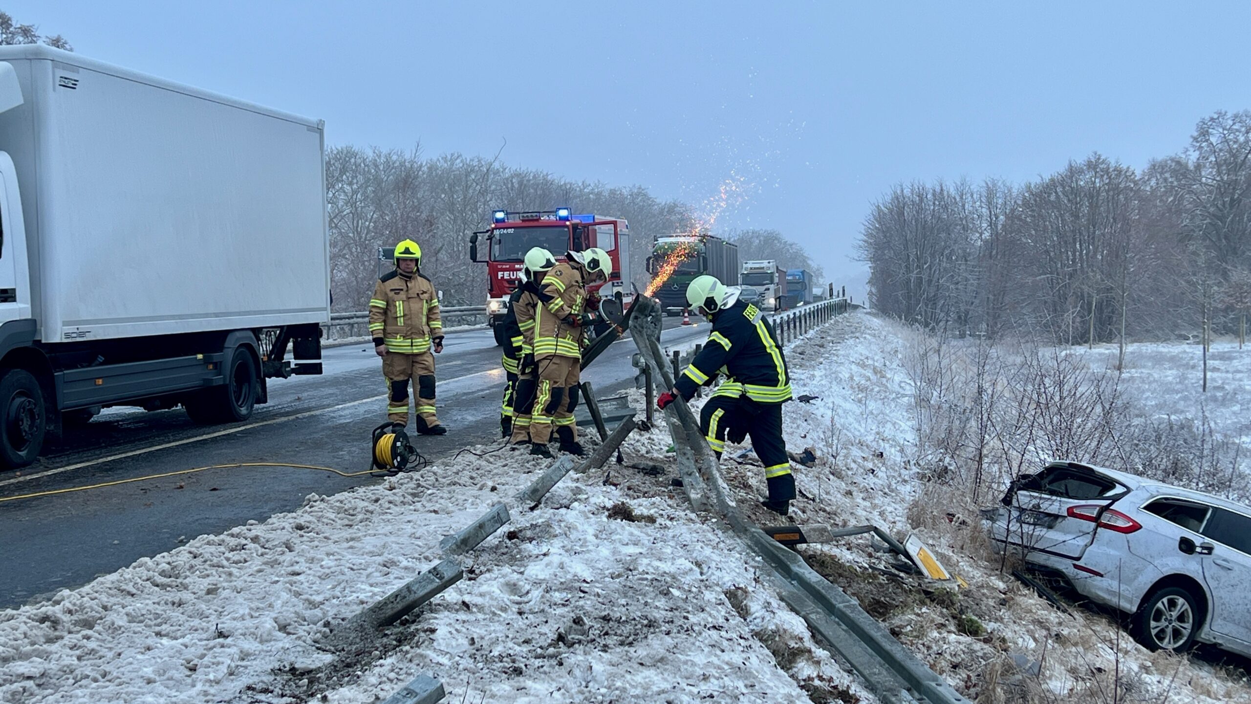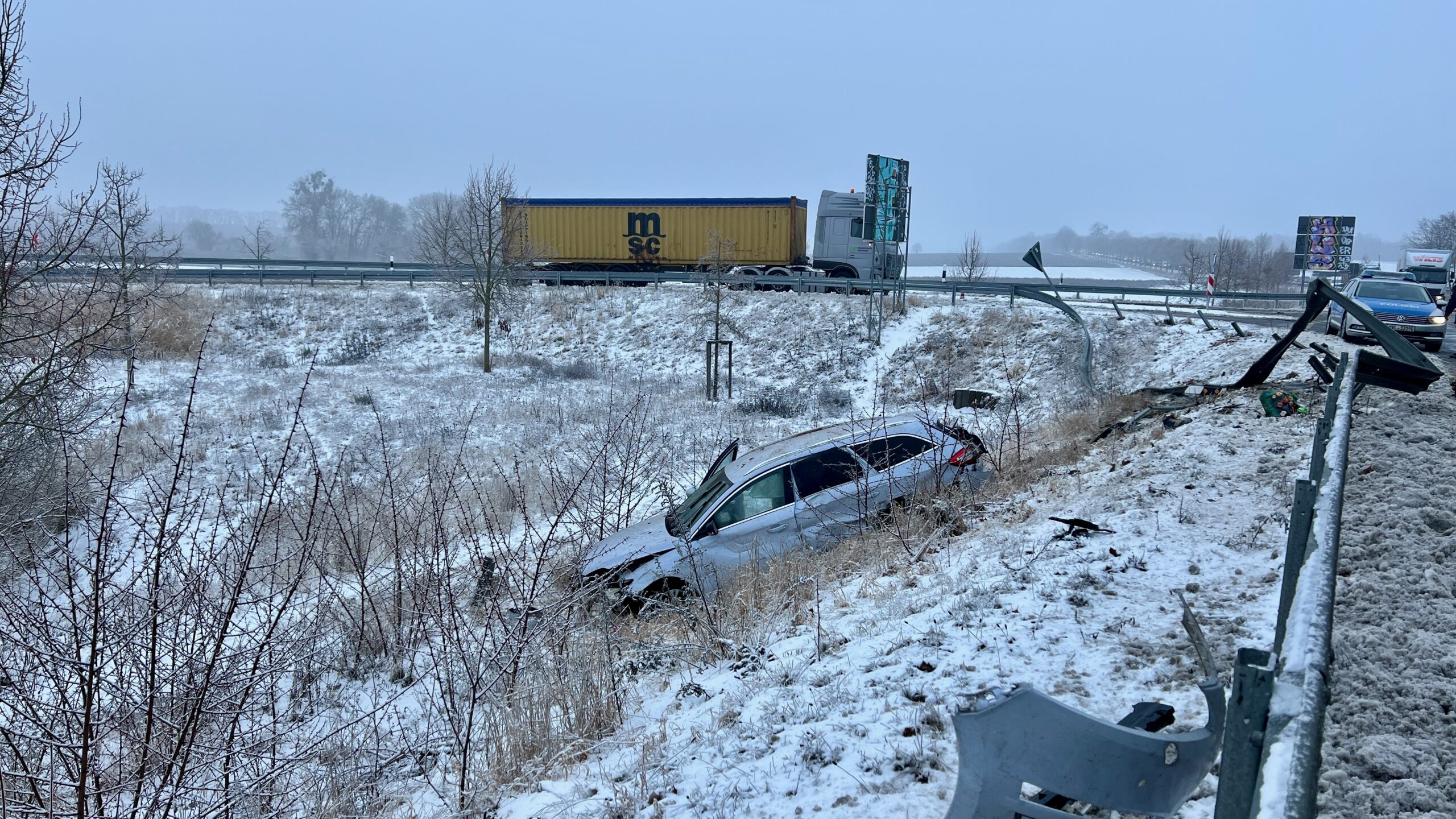 Heute Vormittag ereignete sich gegen 8:50 Uhr ein Verkehrsunfall auf der Bundesstraße 198 in Höhe des Abzweigs Rechlin-Nord und Lärz. Nach bisherigen Erkenntnissen kam ein Pkw aus bislang ungeklärter Ursache von der Fahrbahn ab, durchbrach die Leitplanke und kam neben der Fahrbahn zum stehen. Der Fahrer konnte sich selbstständig aus dem Fahrzeug befreien. Er wurde leicht verletzt und zur weiteren medizinischen Behandlung in ein Krankenhaus gebracht.