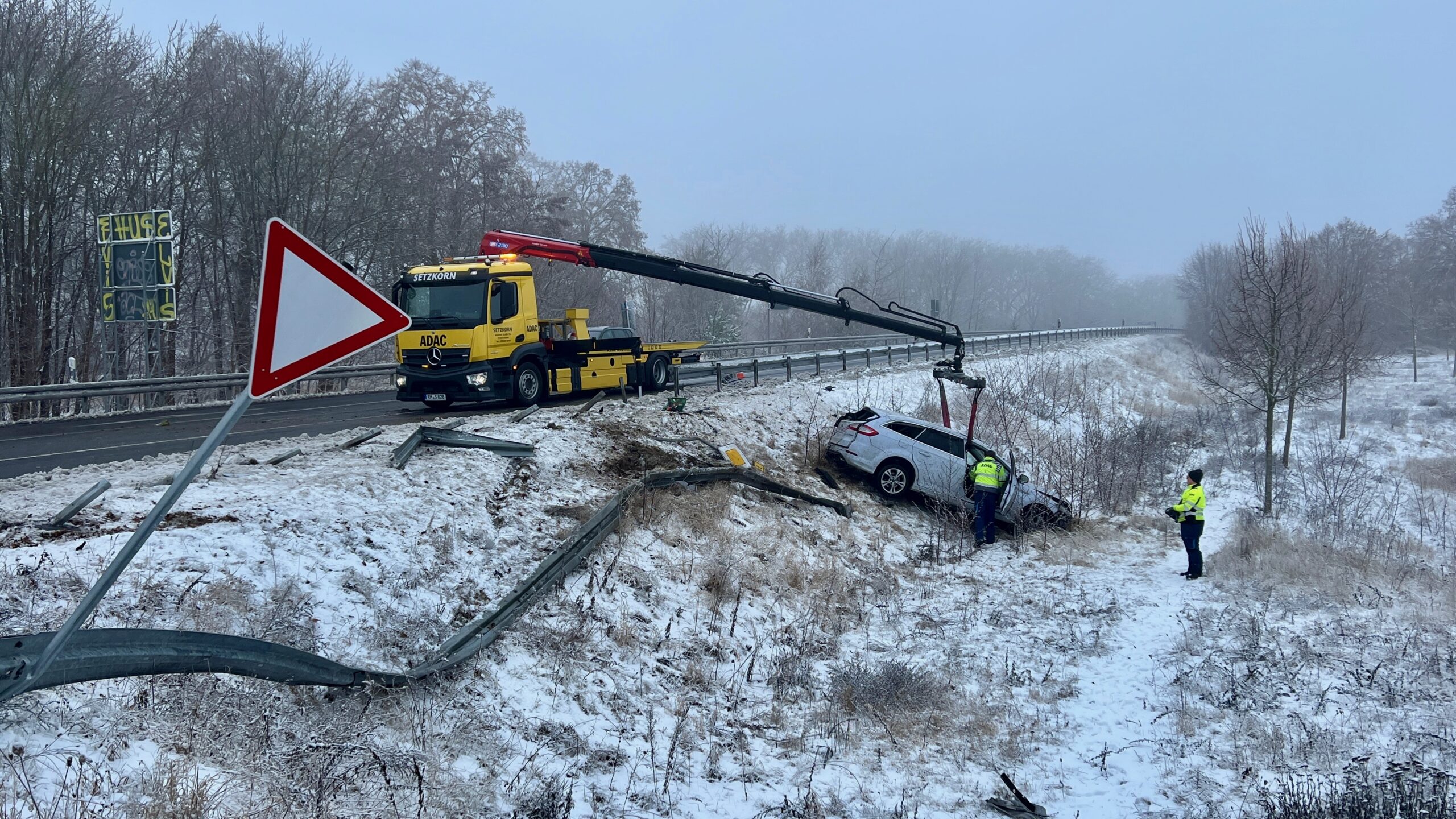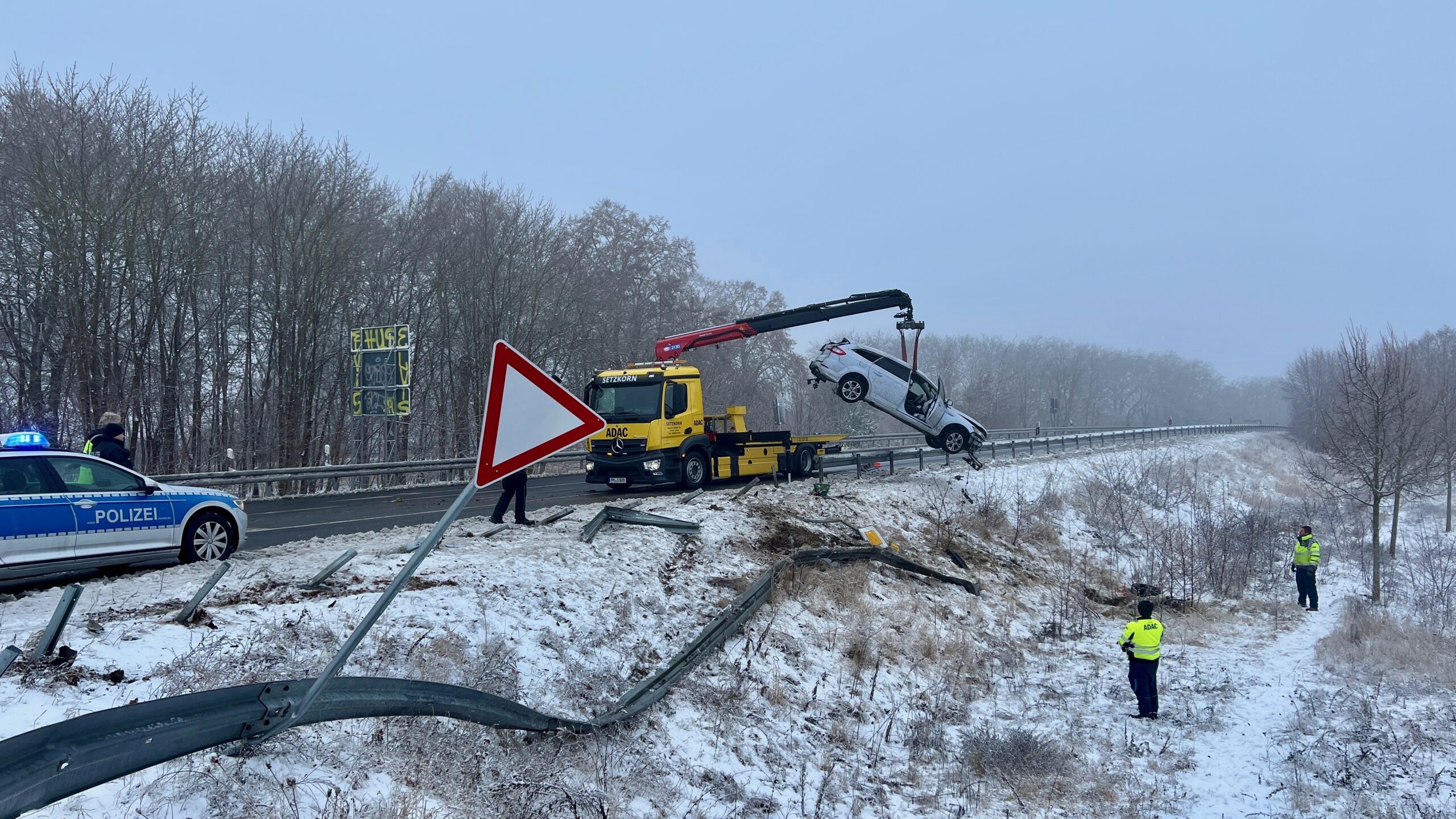 An der Unfallstelle waren Kräfte der Polizei, der Feuerwehr Rechlin und Lärz sowie ein Rettungswagen und ein Notarzt im Einsatz. Für die Dauer der Unfallaufnahme musste die B198 vollständig gesperrt werden. Die Bergung des Fahrzeugs erfolgte durch den ADAC.