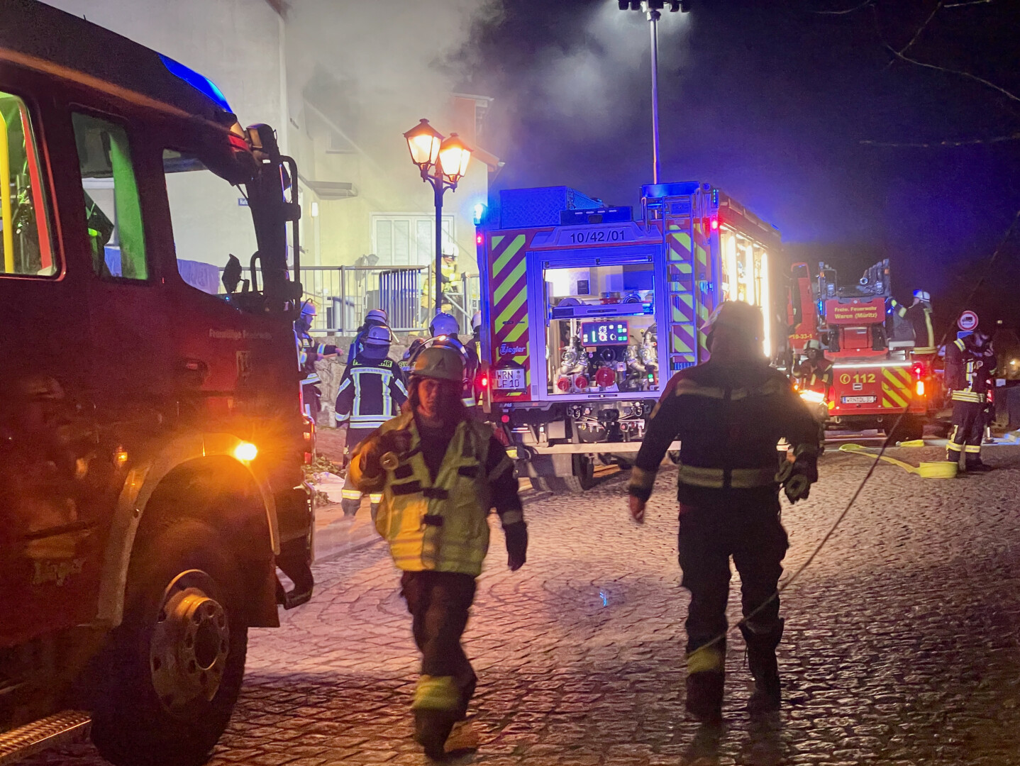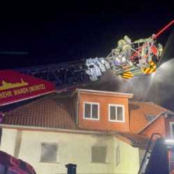 Der Mieter konnte sich selbst retten und ist offenbar unverletzt geblieben. Der Schaden, der bei diesem Brand entstand, dürfte aber in den sechsstelligen Bereich gehen. Bei dem Gebäude, das unmittelbar am Warener Hafen liegt, handelt es sich um ein altes Innenstadthaus, das vor etwas 20 Jahren saniert wurde.