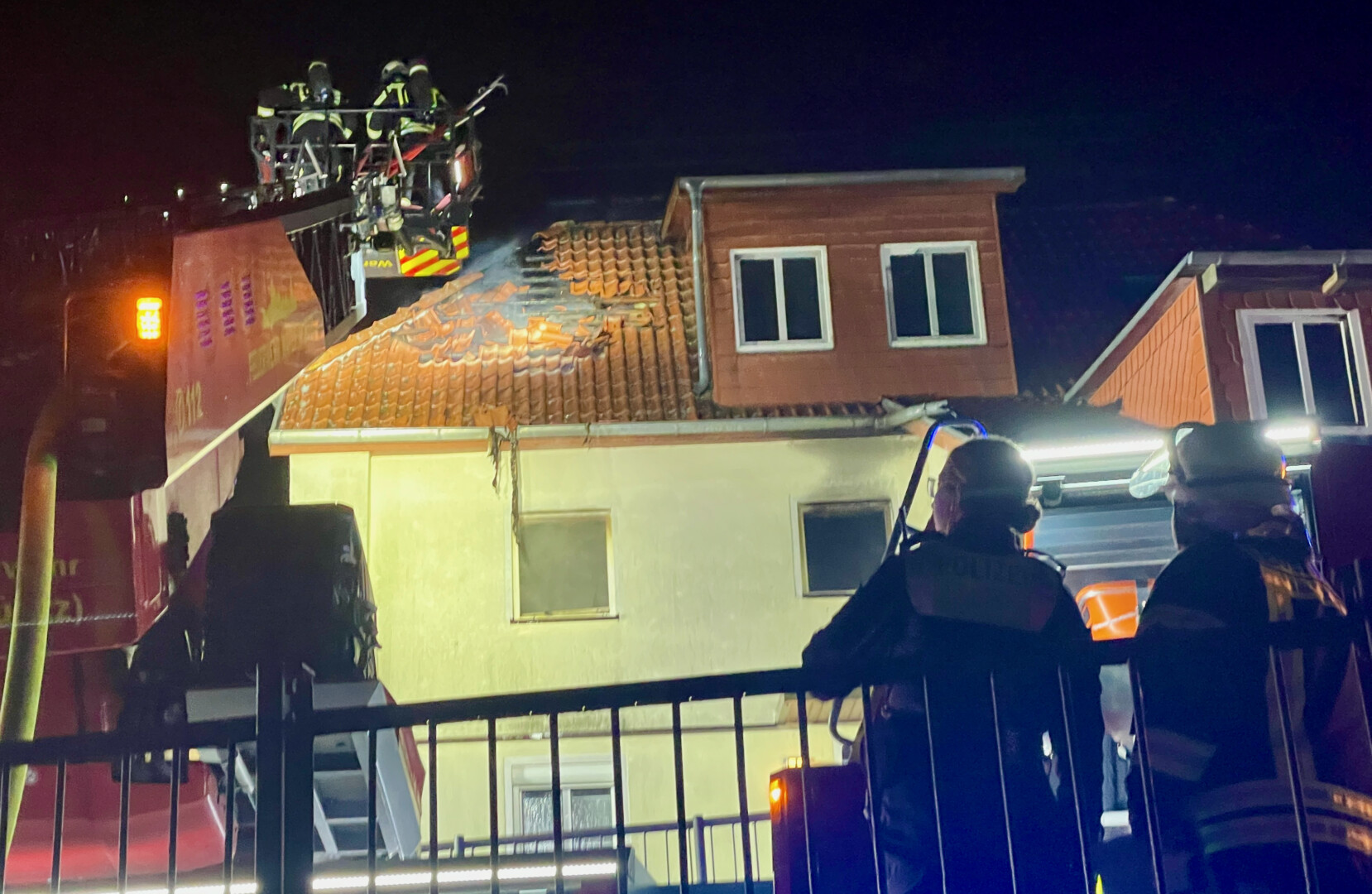 Die Flammen fraßen sich in die alten Dachbalken, so dass den Kameraden nichts anderes übrig blieb, als die Dachziegel zu entfernen. Mit einer Wärmebildkamera machten sich die Feuerwehrleute schließlich auf die Suche nach Glutnestern. Der Einsatz dauert weiter an. Das Haus ist jetzt unbewohnbar.