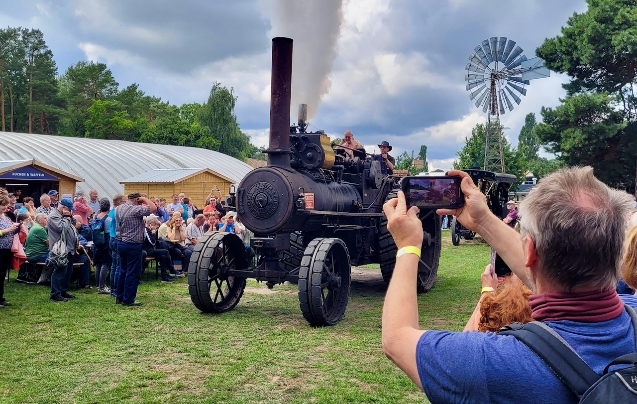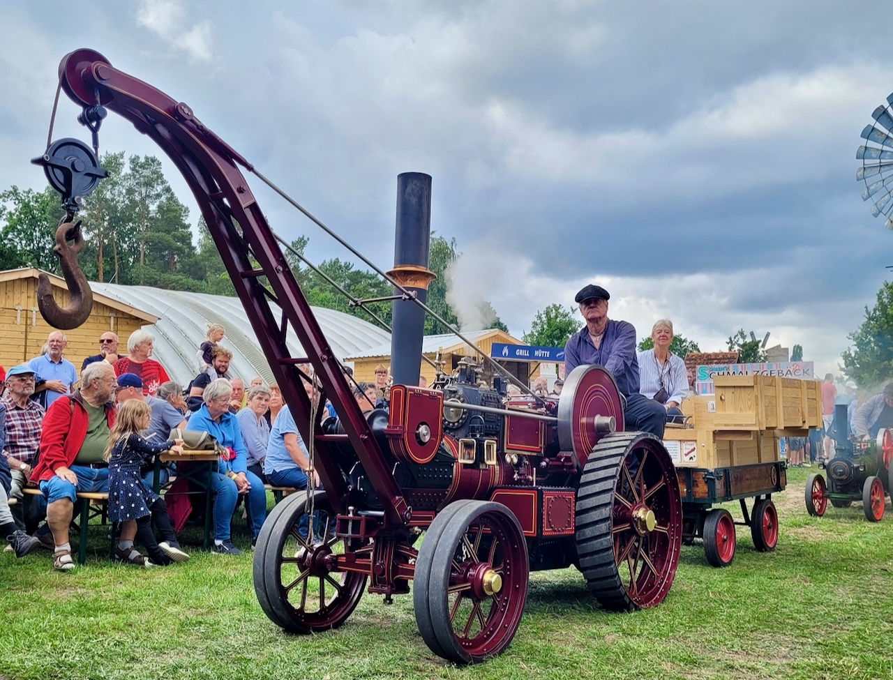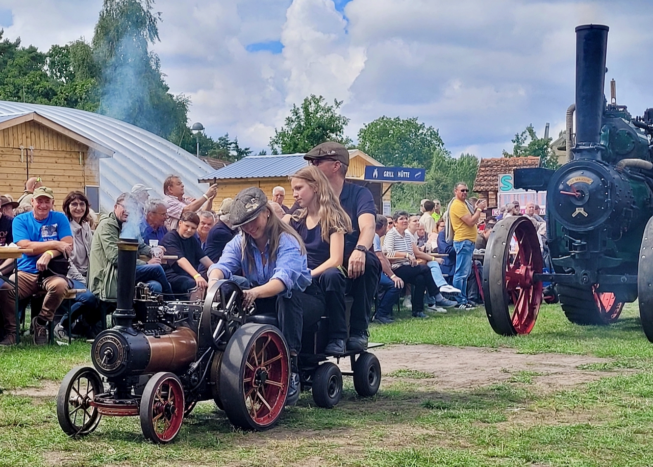Während der Dampfparaden wurden die Maschinen vorgestellt und das ganze Wochenende über in Aktion gezeigt. Bei den landwirtschaftlichen Vorführungen, wie beim Dreschen und am Steinbrecher, kamen ausgewählte Dampfmaschinen ebenfalls zum Einsatz. Für Technikfans war es ein ganz besonderes Erlebnis, sogar mit den Maschinen mitzufahren und die Kraft der Dampfmaschine aus nächster Nähe zu spüren.