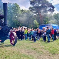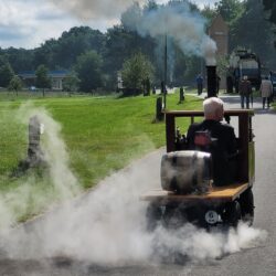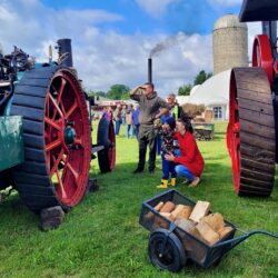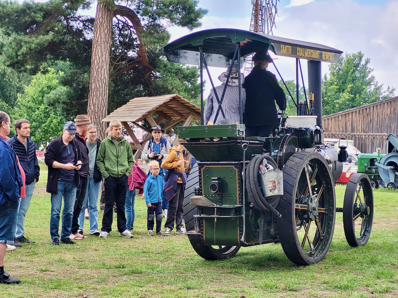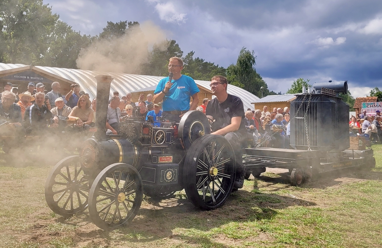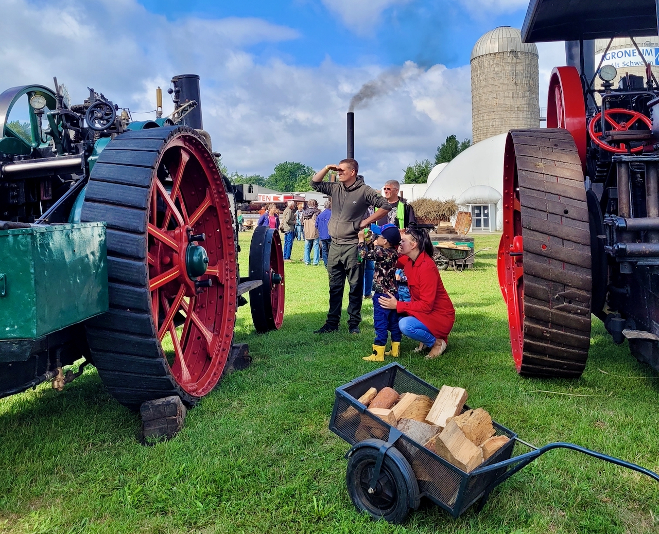 Während der Dampfparaden wurden die Maschinen vorgestellt und das ganze Wochenende über in Aktion gezeigt. Bei den landwirtschaftlichen Vorführungen, wie beim Dreschen und am Steinbrecher, kamen ausgewählte Dampfmaschinen ebenfalls zum Einsatz. Für Technikfans war es ein ganz besonderes Erlebnis, sogar mit den Maschinen mitzufahren und die Kraft der Dampfmaschine aus nächster Nähe zu spüren.