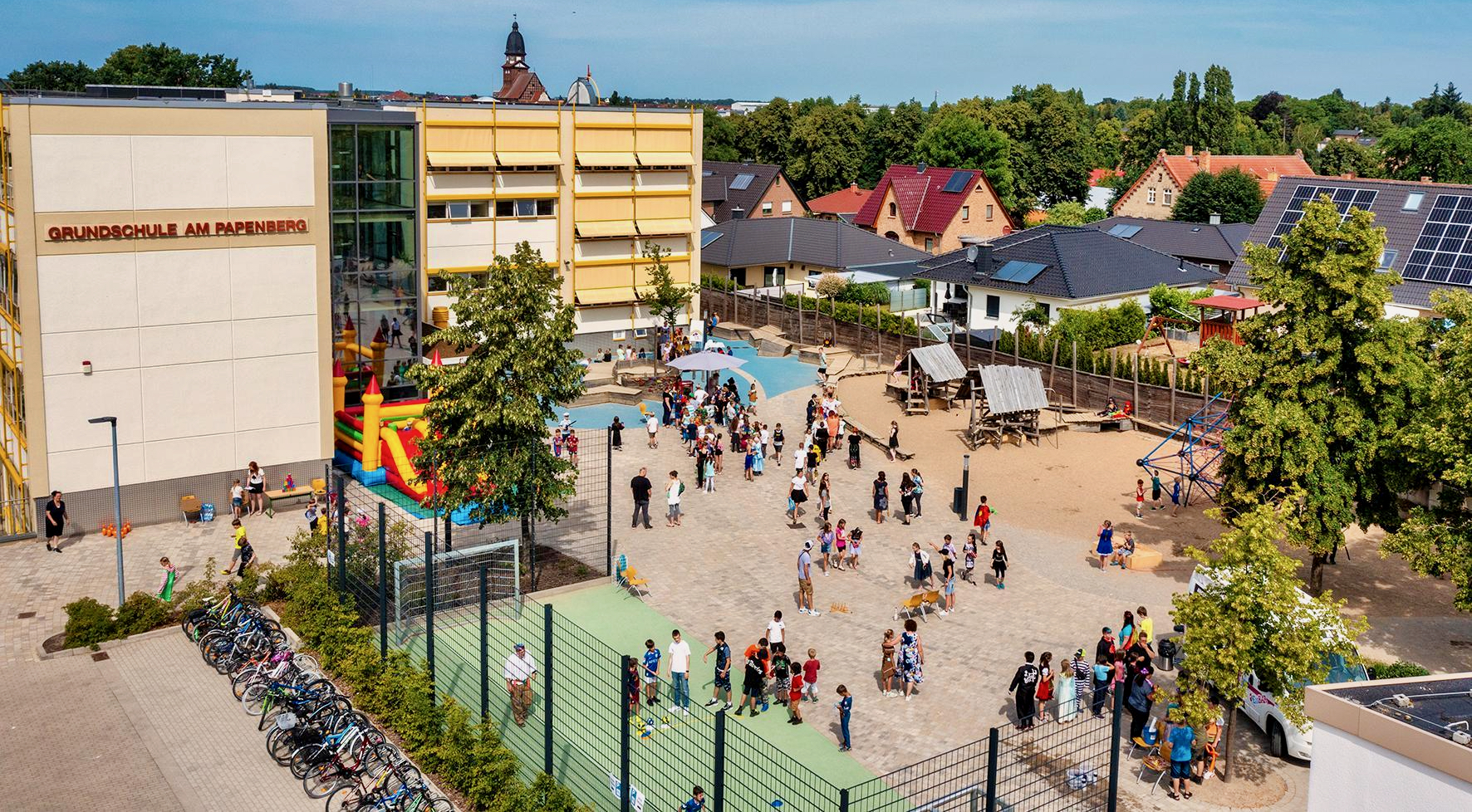 Außerdem gab es auf dem Schulhof ein Standesamt, eine Hüpfburg und viele weitere tolle Attraktionen. Für alle Schleckermäulchen standen ein Eiswagen, eine Popcorn- und Zuckerwattemaschine bereit.