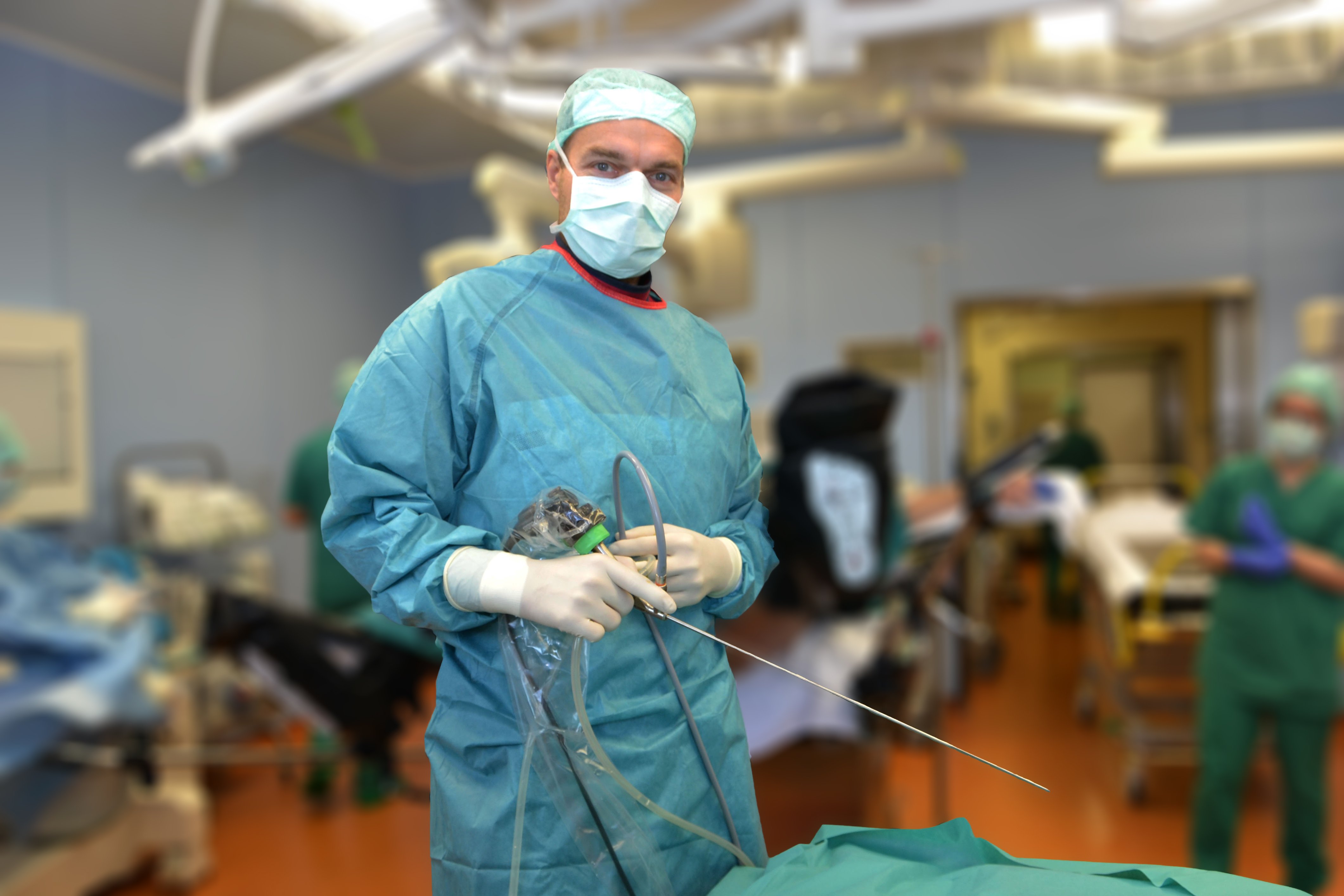 Foto im Text: Oberarzt Dr. Markus Rodat vor einer Harnstein-OP