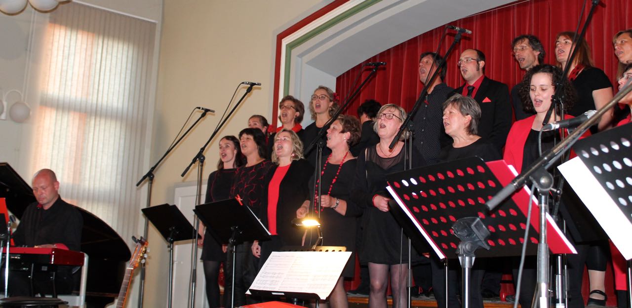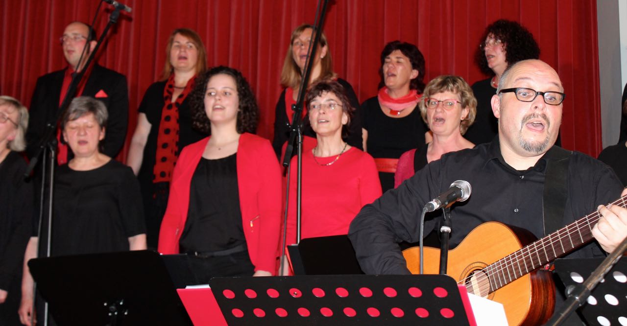 In den Liedansagen erfuhr das Publikum einiges aus der 10-jährigen Chorgeschichte. Nach der Pause begeisterte der Chor unter anderem mit „Please tell Rosie“, „Zombie“, „Irgendwas bleibt“ und dem Solo „Junimond“ von Jörg Mondschein.