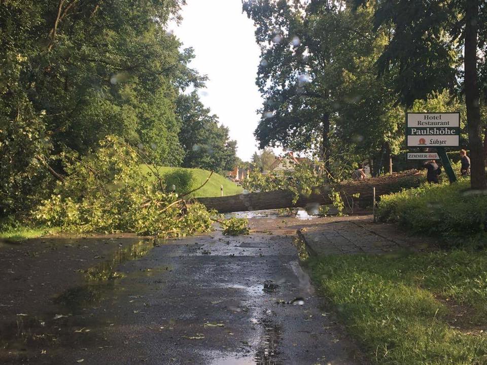 Im Bereich der Gaststätte „Paulshöhe“ ist ein großer Baum auf die Straße gekippt, Warens Feuerwehr musste zur Beräumung ausrücken. Auch andere Wehren waren im Einsatz, vor allem, weil große Äste die Straßen blockierten.