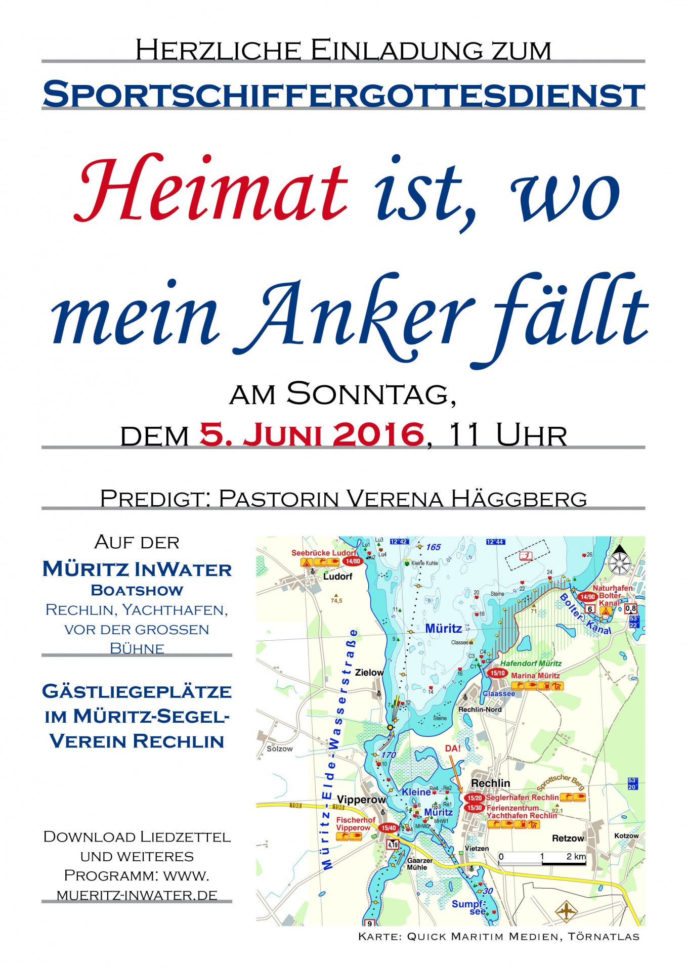 Unter dem Motto „Heimat ist, wo mein Anker fällt“ lädt die Kirchengemeinde Rechlin morgen zum Gottesdienst für Sportschiffer und alle anderen ein, die auf dem Wasser zu Hause sind. Veranstaltungsort des 5. Sportschiffergottesdienst ist in diesem Jahr erstmals die Müritz-InWater-Bootsausstellung direkt am Dampferanleger beim Seglerhafen im Ort Rechlin.