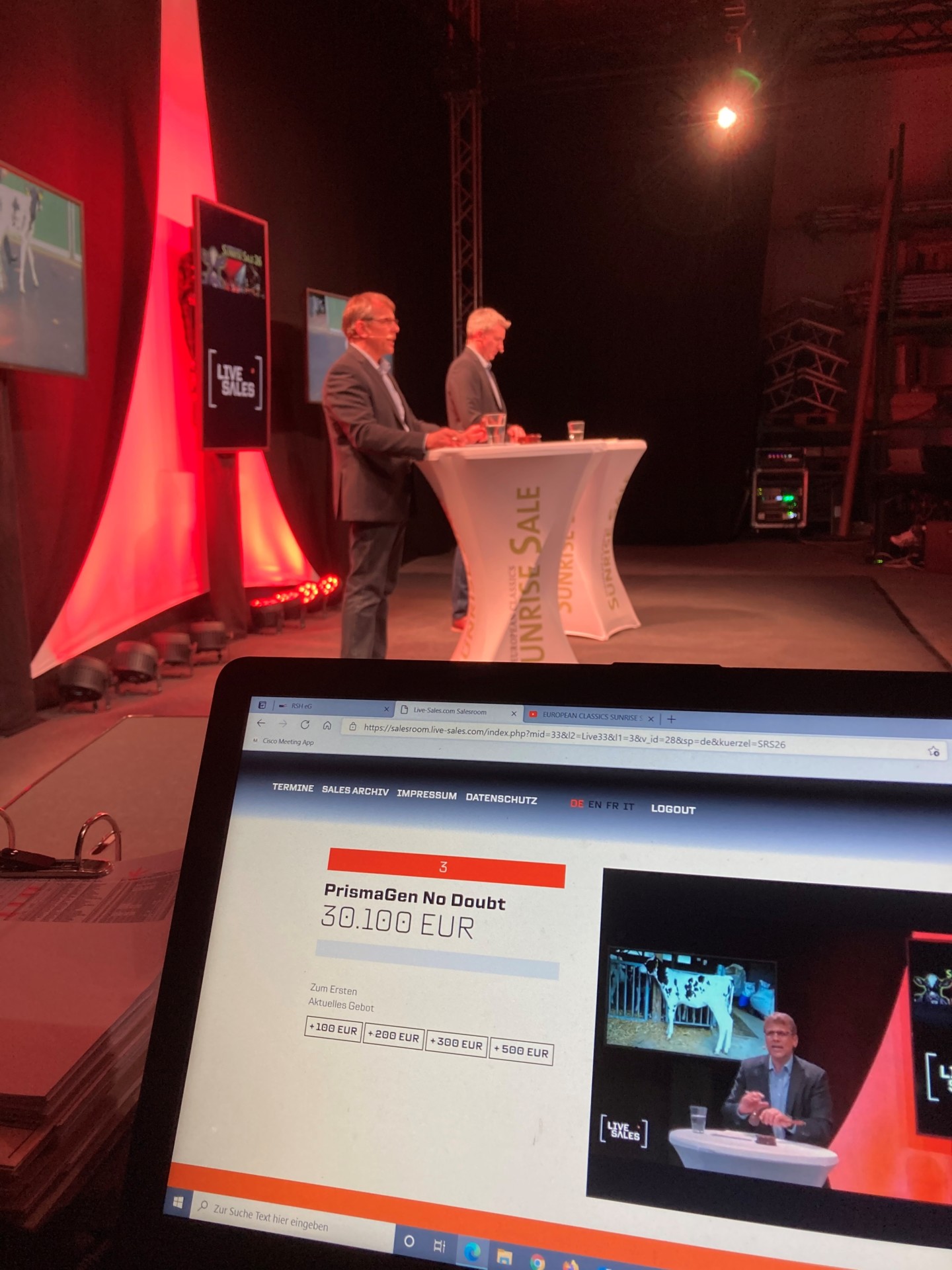 Für die Versteigerung mussten die Jungrinder – Kühe werden sie im Fachjargon eigentlich erst genannt, wenn sie das erste Mal gekalbt haben – diesmal nicht die Reise nach Karow antreten. Fachleute filmten die tierischen „Stars“. Somit konnten sich die Bieter aus einer Reihe von Ländern, darunter auch Italien und Nordirland, am Bildschirm ein Urteil bilden und mitbieten. Insgesamt wurden 45 junge Rinder versteigert, der durchschnittliche Preis lag am Ende bei etwa 7500 Euro.